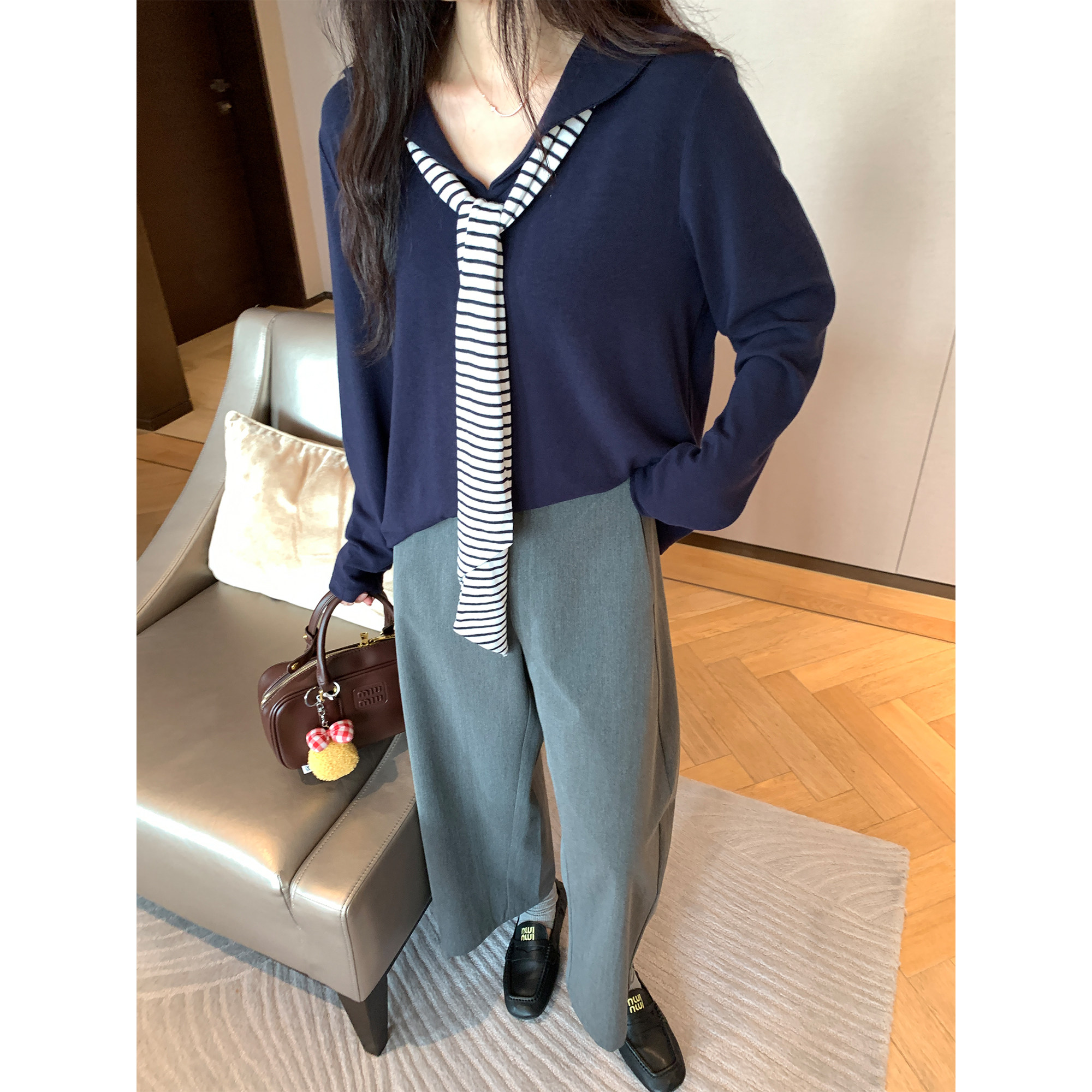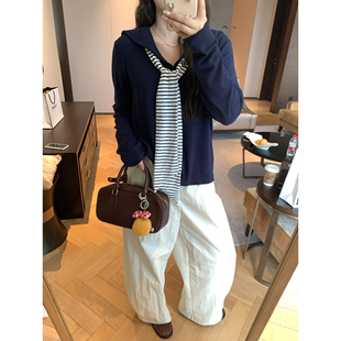 胖mm气质洋气上衣 拜耳羊绒休闲海军领T恤披肩套装 NAZ那子大码 秋季