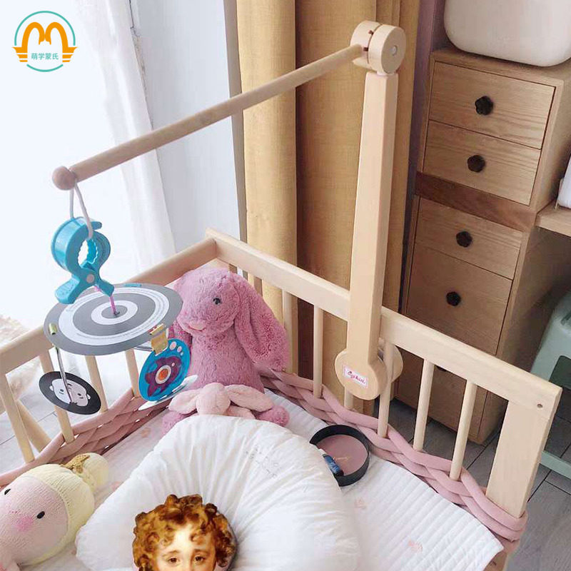 萌学实木质夹式 床铃支架杆新生婴儿床头挂件摇铃益智玩具吊饰架