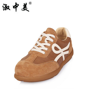 ins风薄底单鞋 轻便板鞋 女棕色德训鞋 冉言小众百搭复古软底单鞋