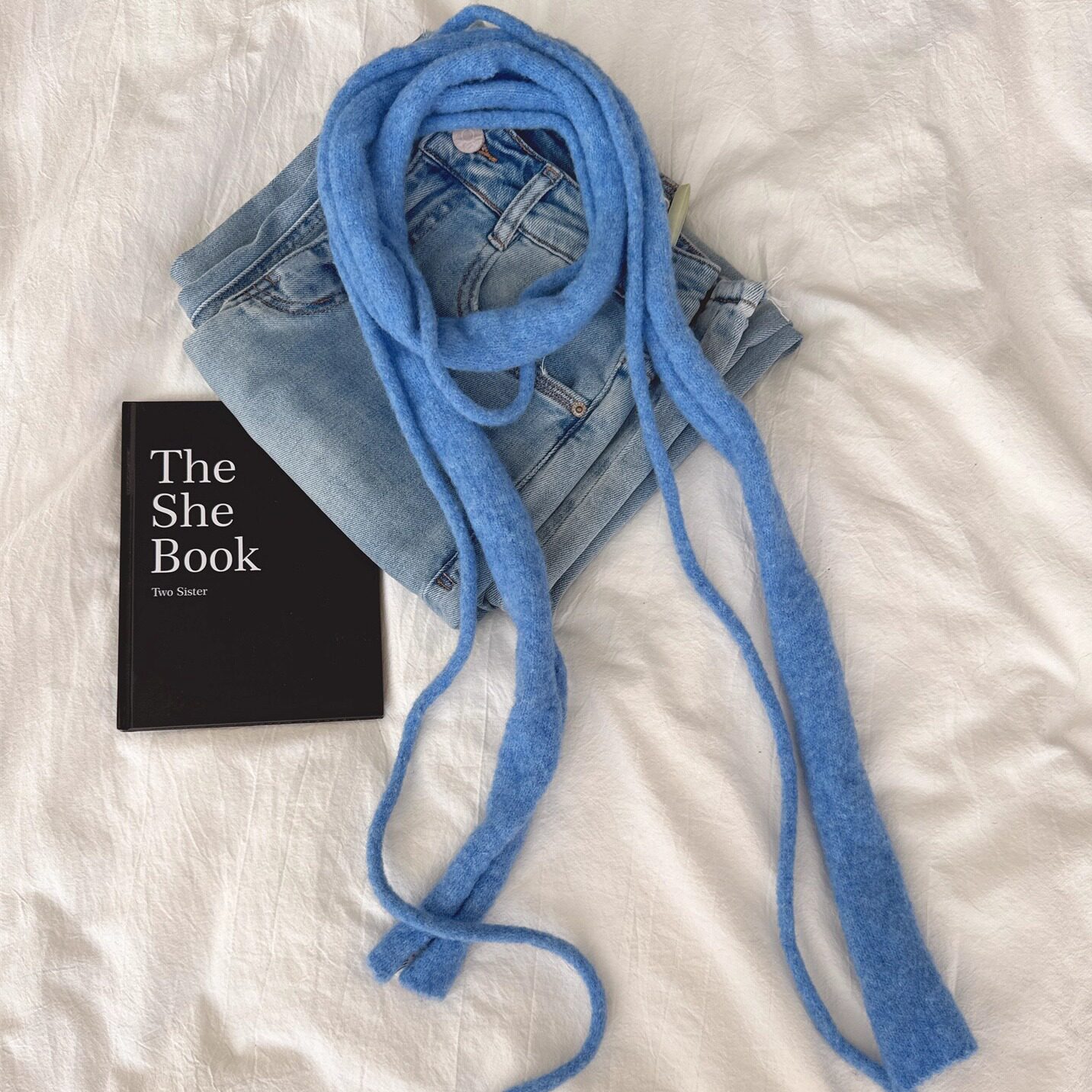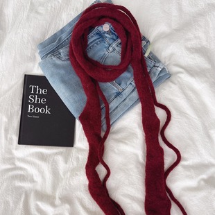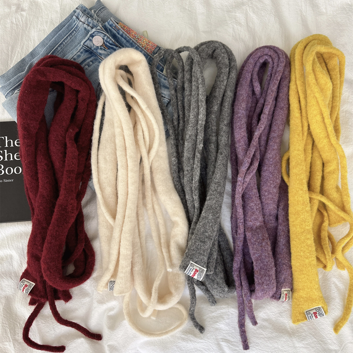 小众叠戴日系复古条纹细围巾原宿风纯色长条针织辣妹装 饰围脖时髦