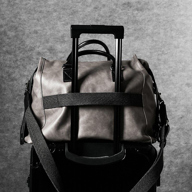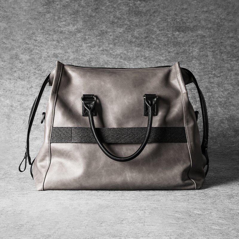 吉卡尼 休闲复古旅行袋灰色牛皮手提大容量行李袋单肩斜挎手拎包