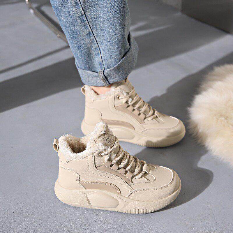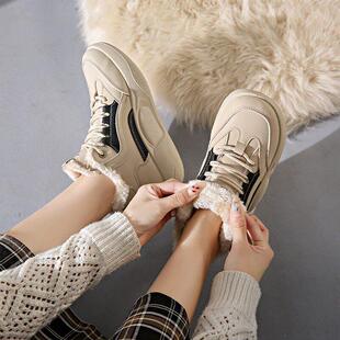 女2025新款 运动鞋 冬季 时尚 加绒加厚保暖高筒老爹鞋 真皮踩屎感棉鞋