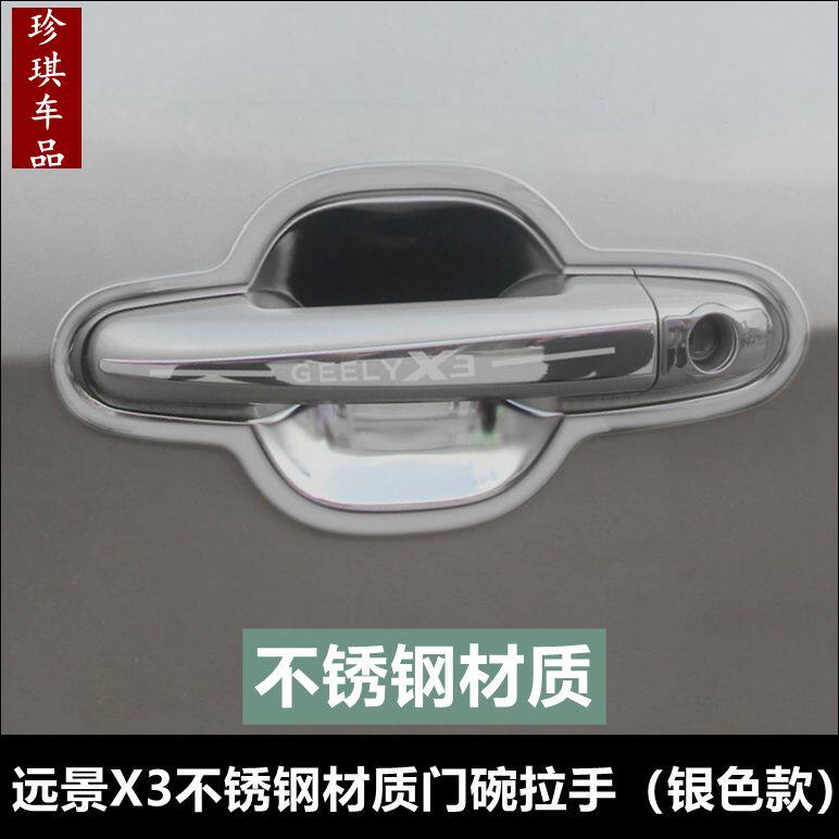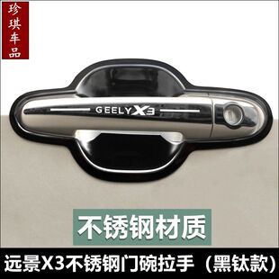 吉利远景X3专用不锈钢材质门碗拉手17 远景X3不锈钢门把手贴 21款