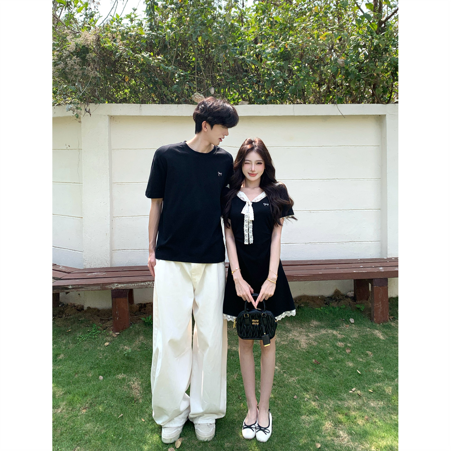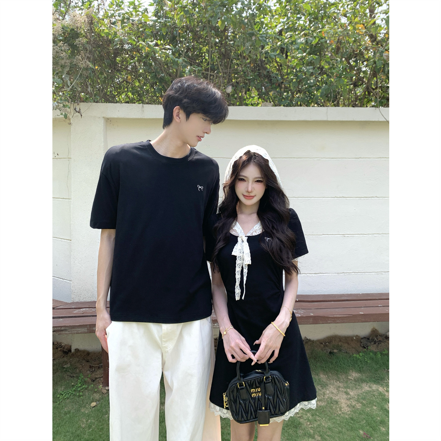 t恤男女连衣裙法式 小众设计感情侣装 短袖 2026韩版 一裙一衣潮 夏季
