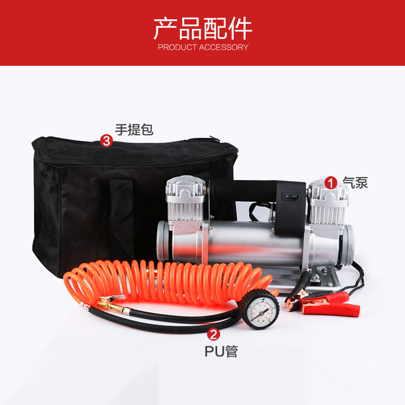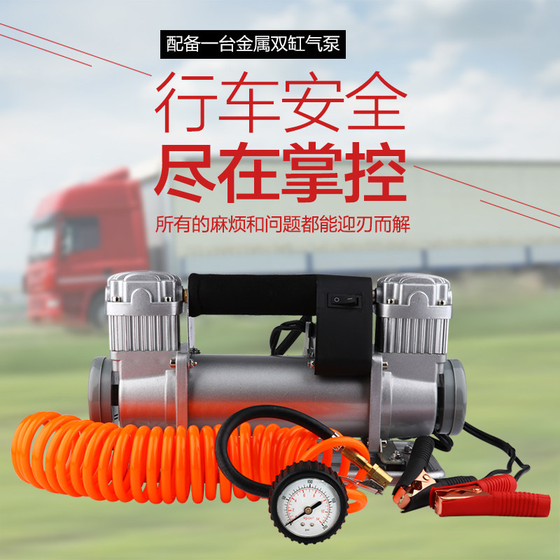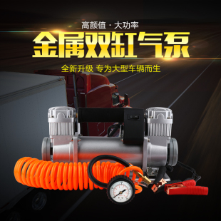 车载充气泵双缸卡车用轮胎打气机越野玩沙轿车高压大功率冲气12v