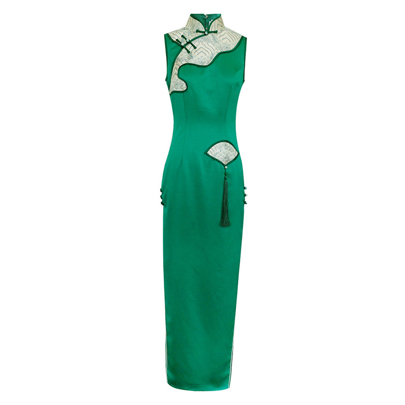 舞蹈服走秀旗袍女气质年轻款 旗袍2021年新款 大码 改良长款 礼服 夏季