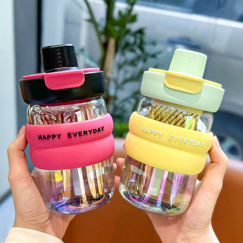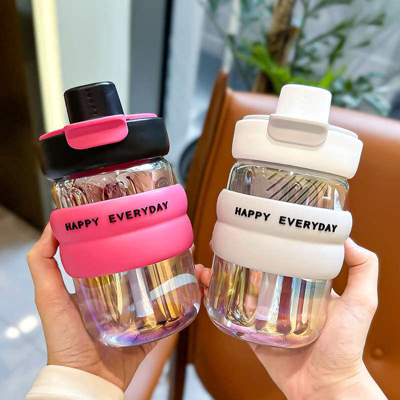 双饮水杯2025新款 女生办公室高颜值吸管杯夏天便携学生玻璃杯茶杯