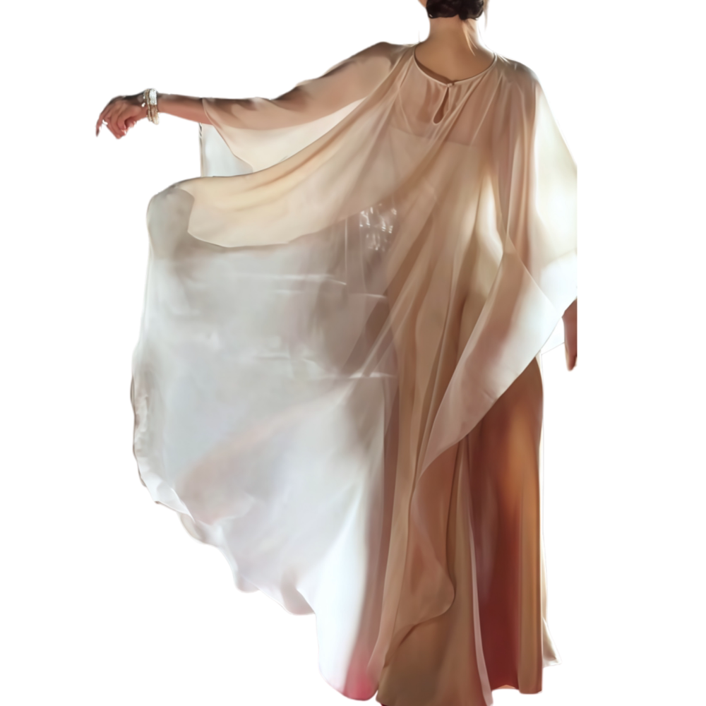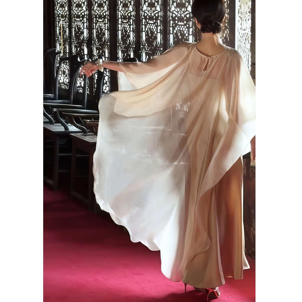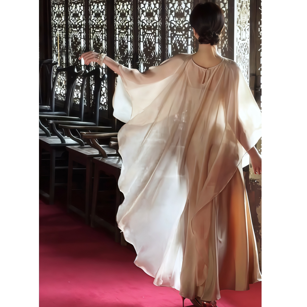 2026年禅意风披肩式 连衣裙女香槟色长裙简约轻奢清冷感仙女裙 长款
