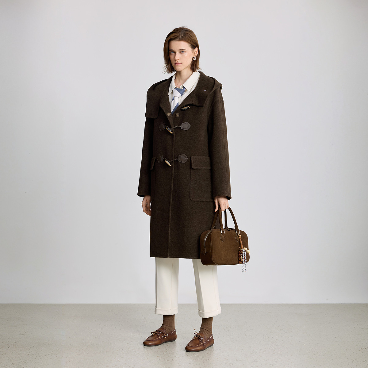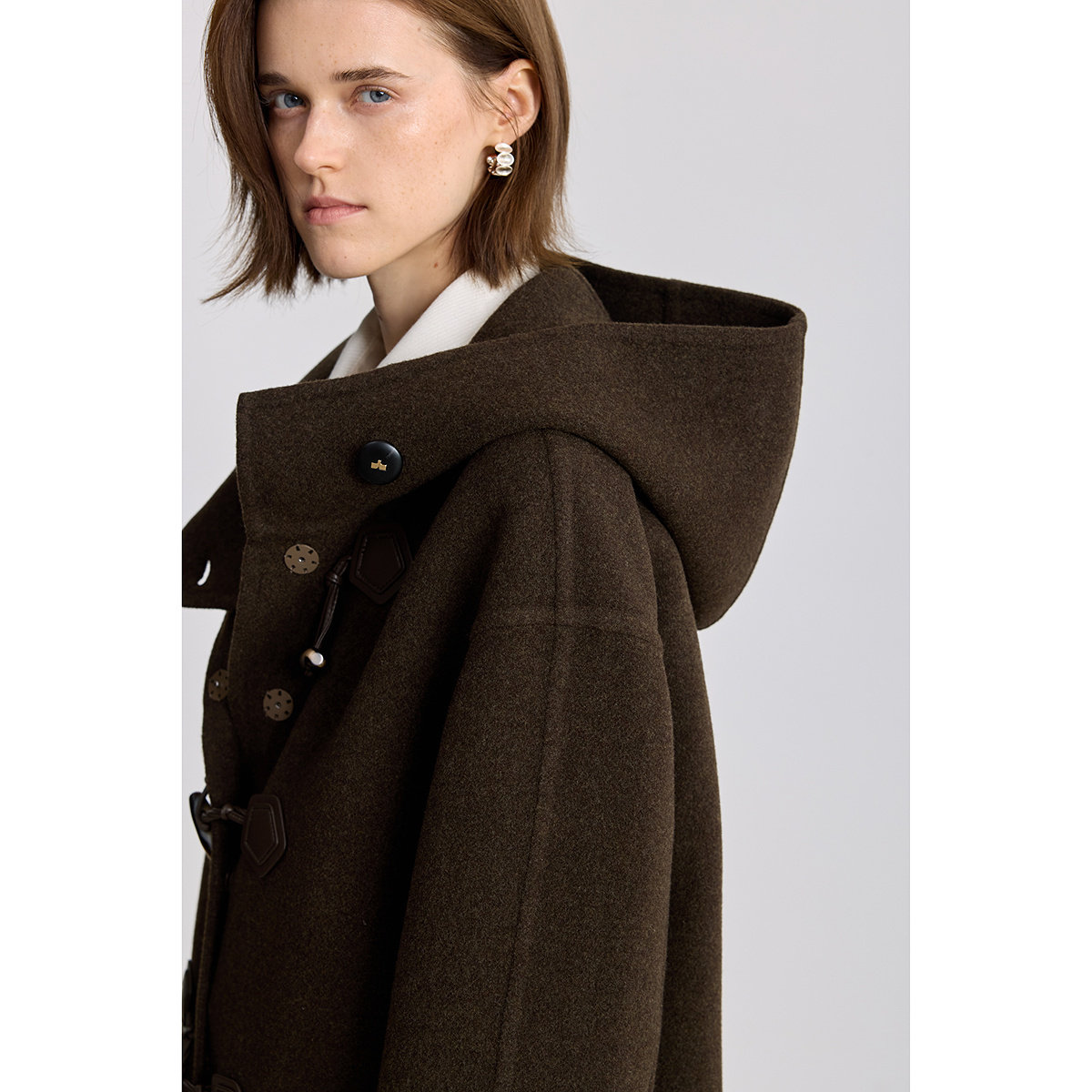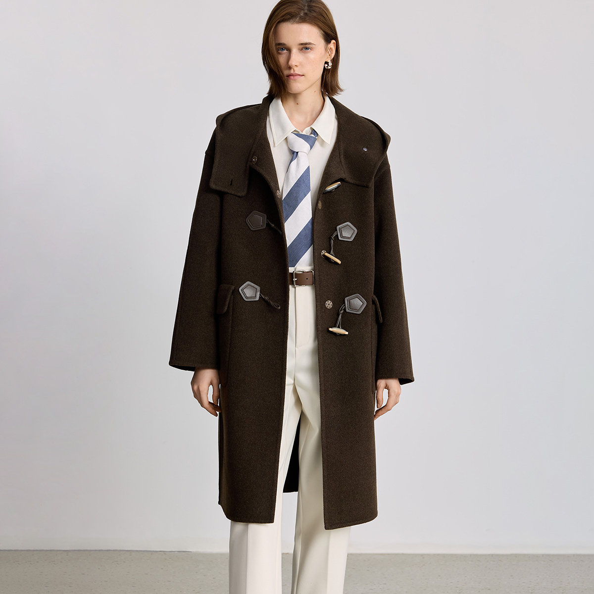 100%羊毛LILY冬新款 牛角扣双面呢毛呢大衣外套125429FN943 女装
