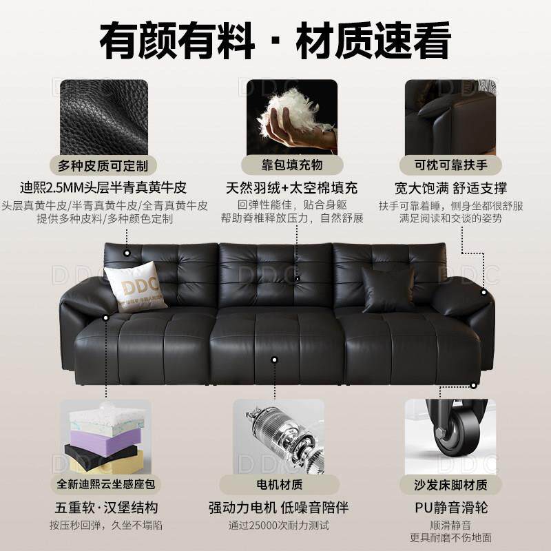 DDC简约现代零靠墙多功能沙发2025新款 智能伸缩观影全青皮沙发床