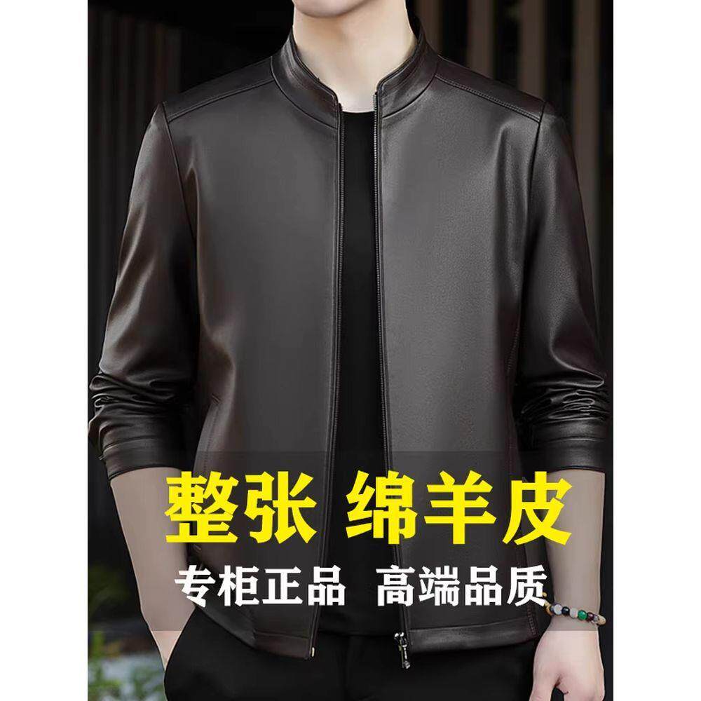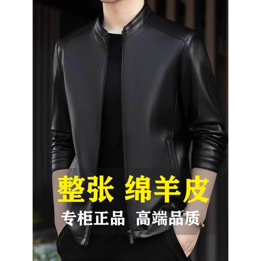 立领头层绵羊皮夹克中青年软皮外套薄款 高档海宁新款 真皮皮衣男士