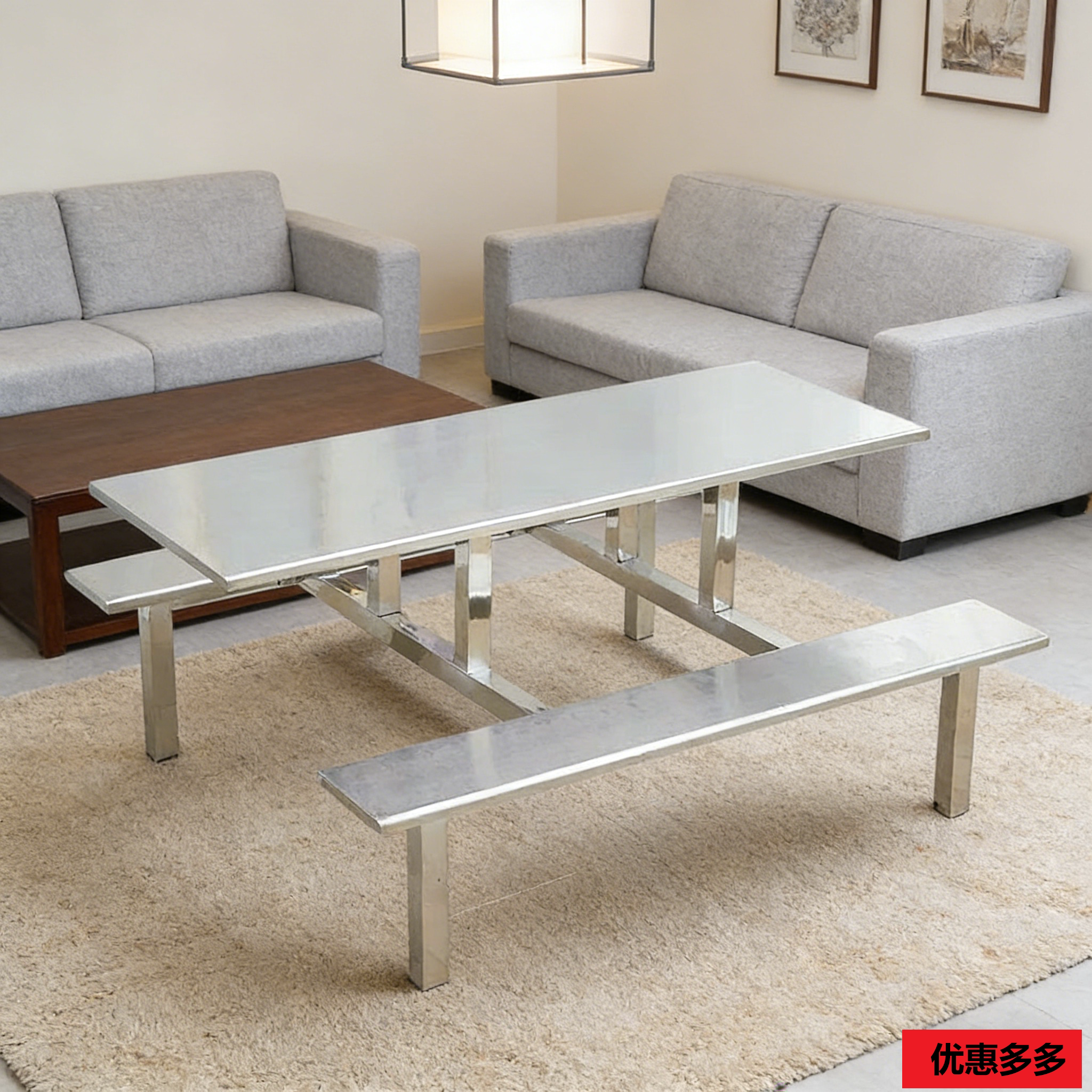不锈钢餐桌椅食堂公司工地餐桌椅4人位6人位8人位
