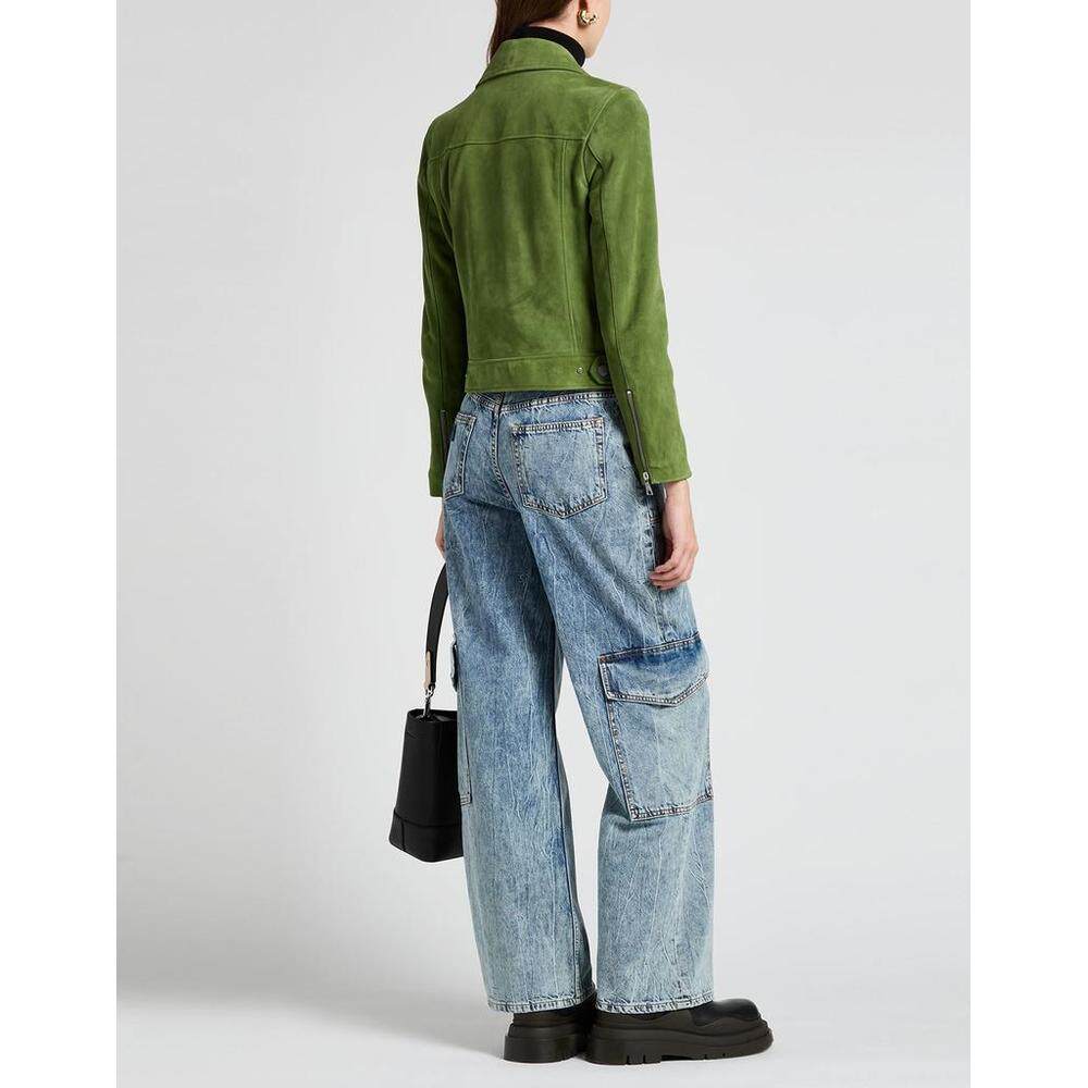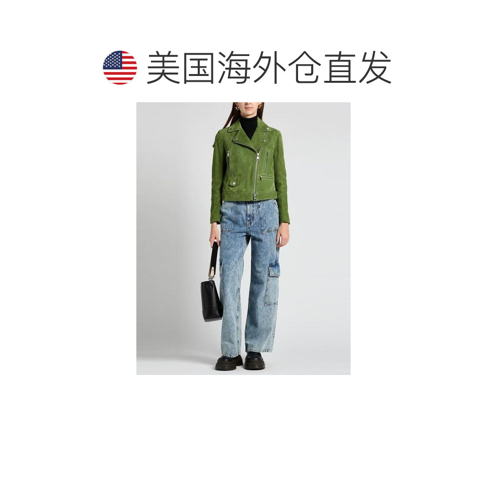美国直邮 100 KARL 女士机车夹克 山羊皮翻领单排扣 LAGERFELD