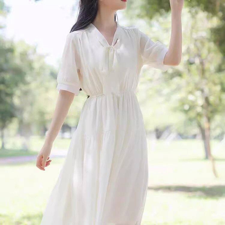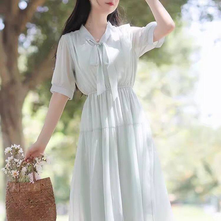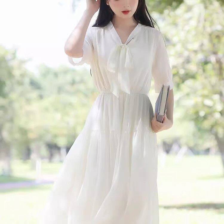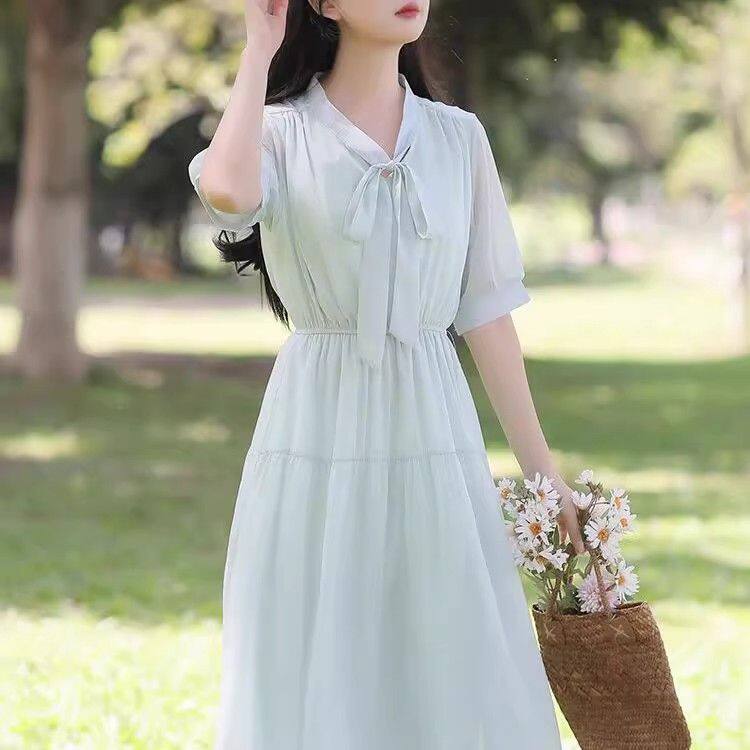 大码 胖MM气质雪纺连衣裙女夏森系初恋裙收腰显瘦超仙温柔长裙2025