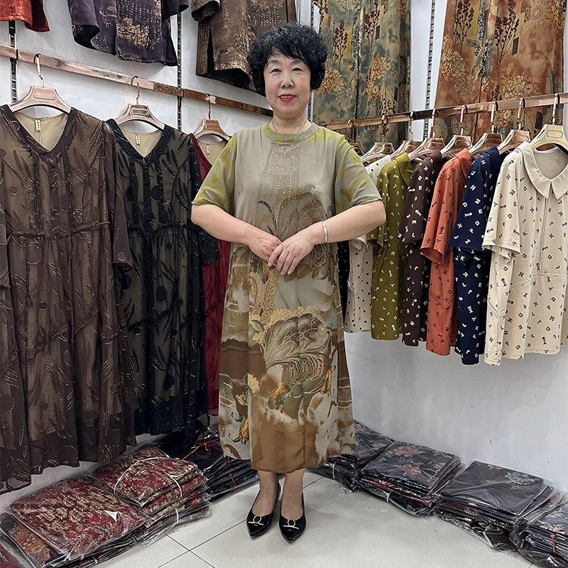 妈妈装 中老年女装 中长款 连衣裙女40岁50改良旗袍式 中国风真丝时尚
