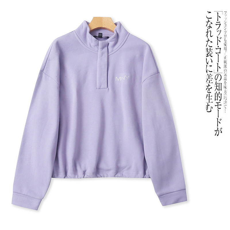 G7630外贸欧美女生加绒卫衣新款 休闲加厚上衣 立领纽套头宽松短款