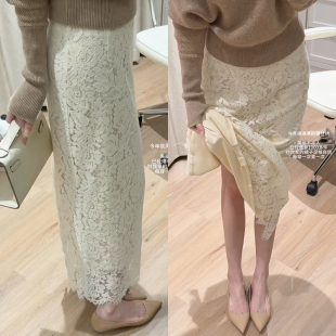 白色重工蕾丝鱼尾月光裙女款 梨型身材伯克利裙 纯欲直筒半身裙大码