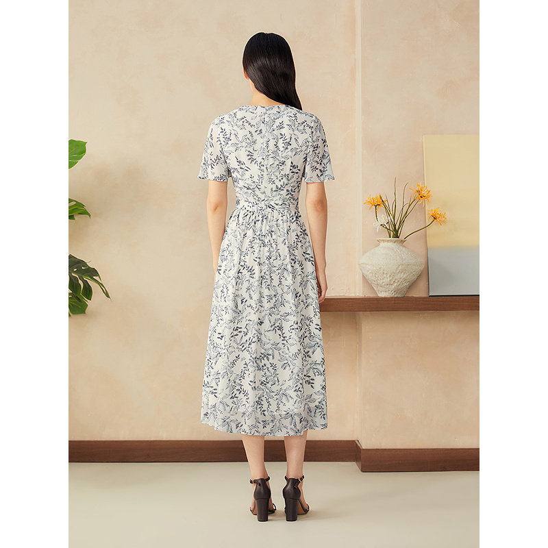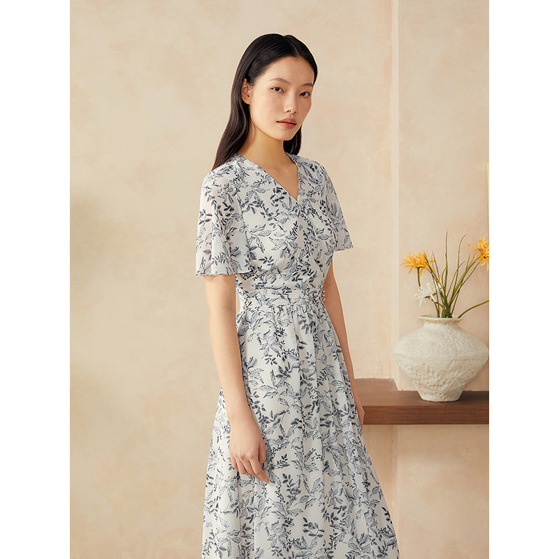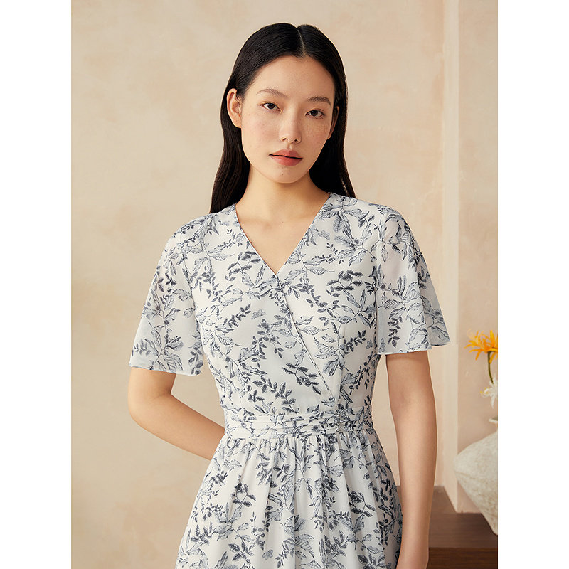 诗意海棠印花V领高腰连衣裙 新中式 YINER音儿专选2025夏季 新款