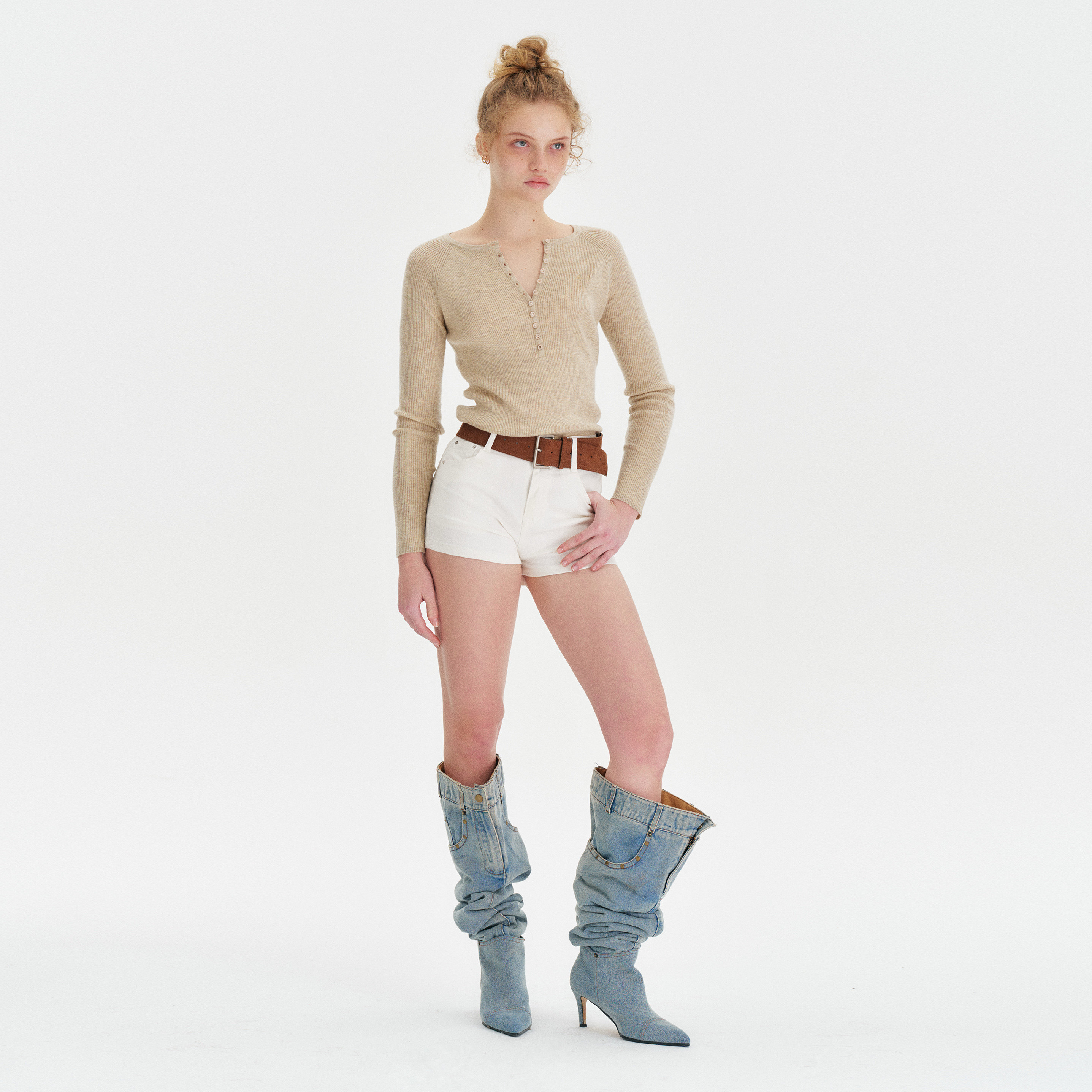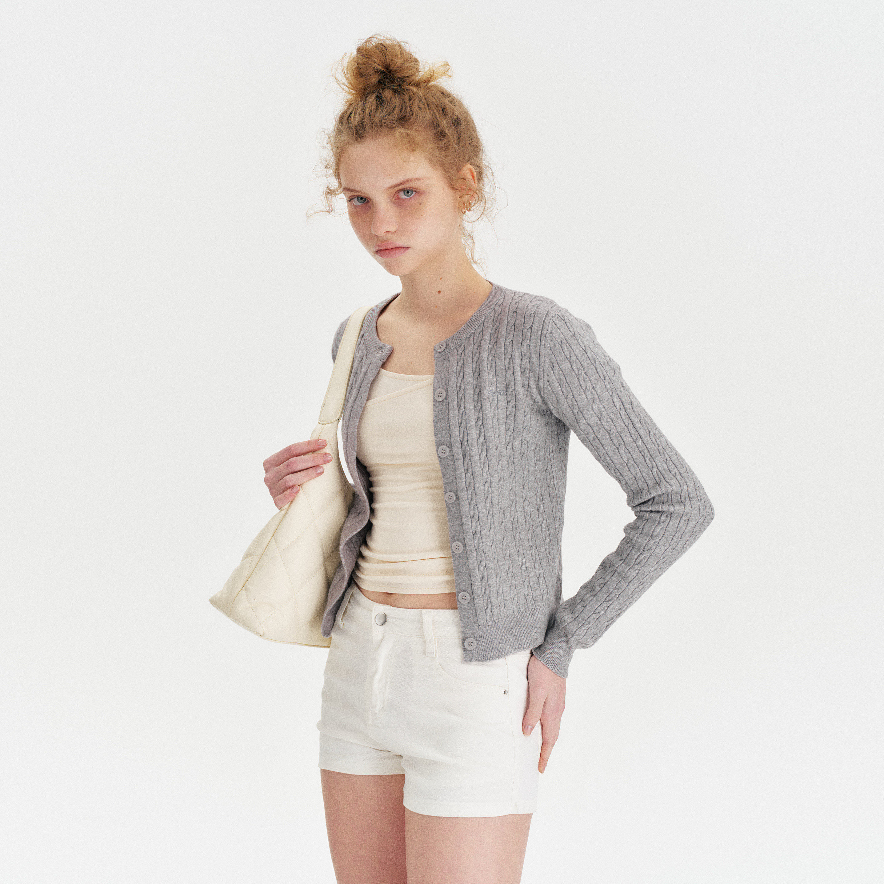 显瘦百搭热裤 Amee极简复古白色微弹牛仔短裤 修身 基础款 女