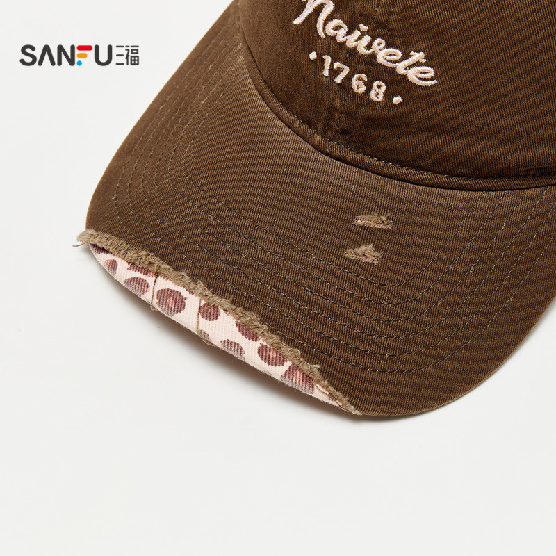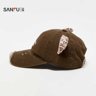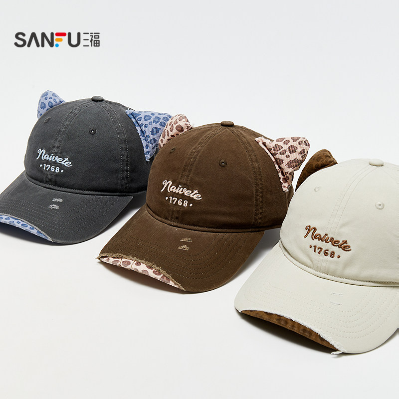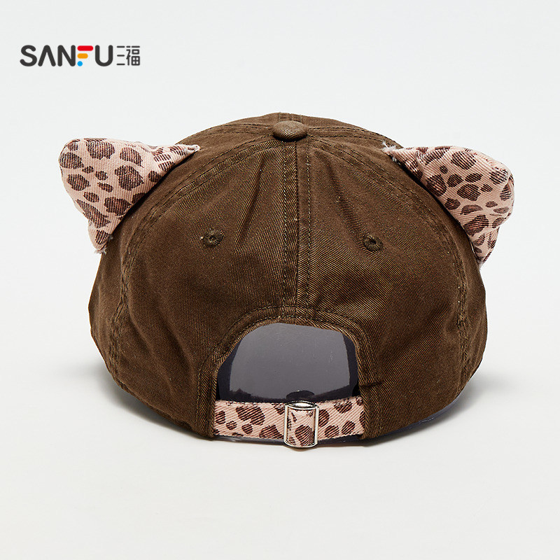 潮流鸭舌帽服饰配件帽子852637 个性 三福猫耳豹纹破洞款 棒球帽