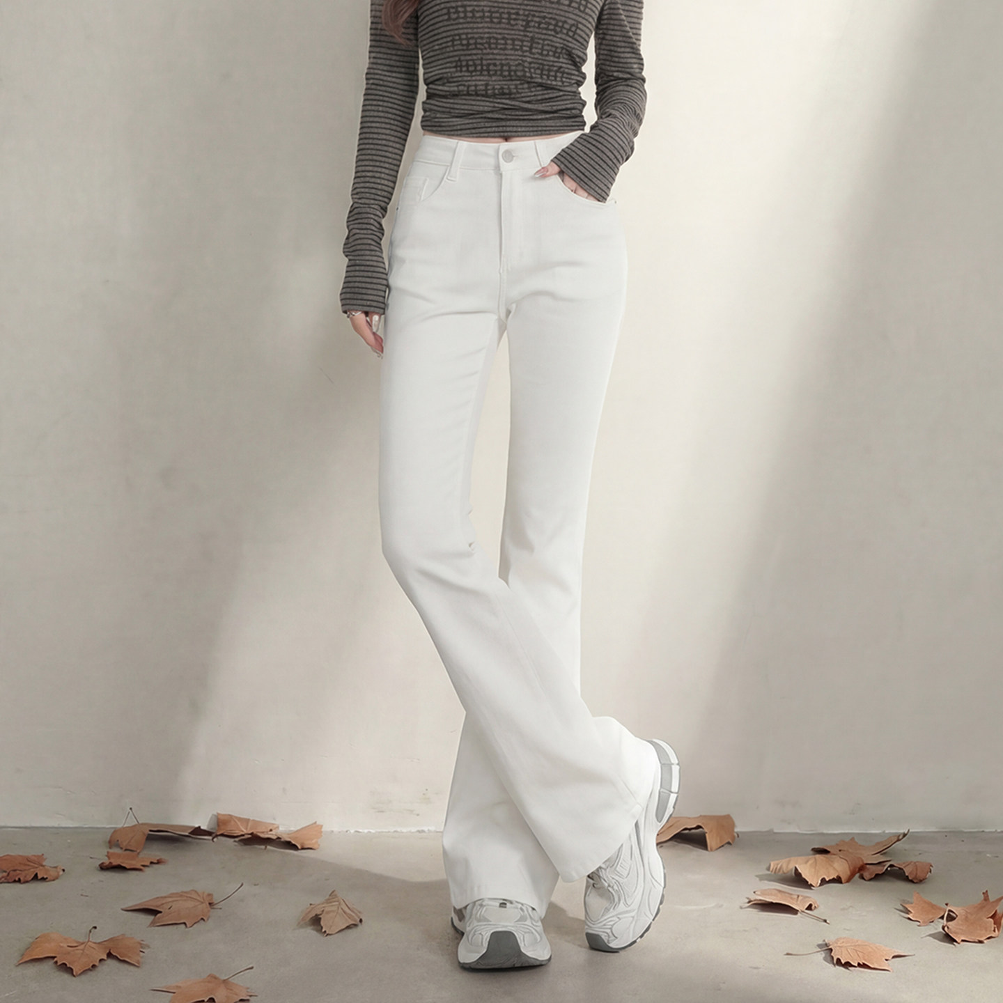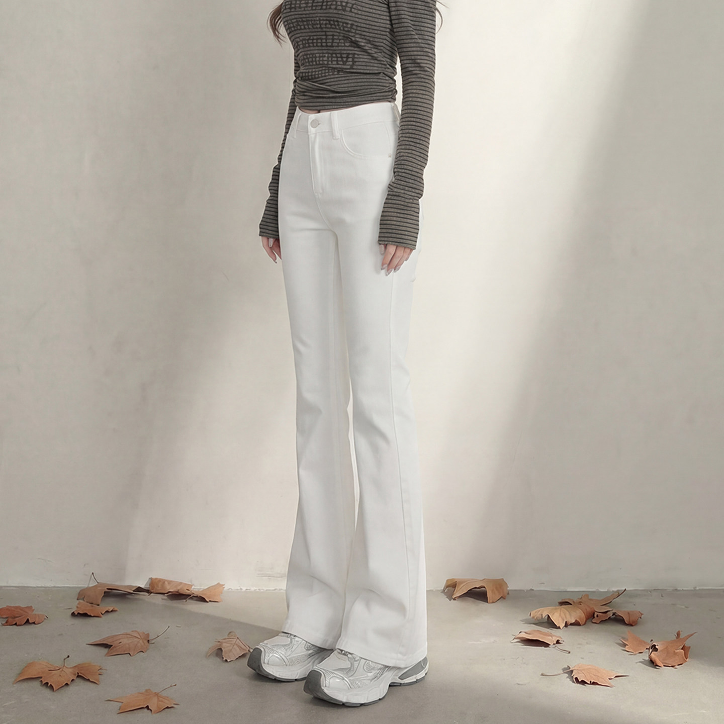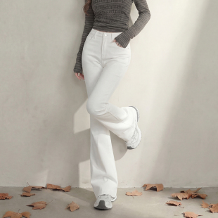 显瘦百搭微弹拖地马蹄裤 新款 女2026春季 艾格白色微喇牛仔裤