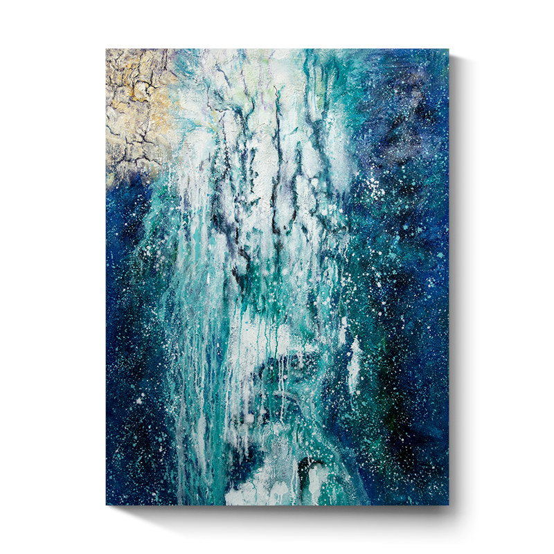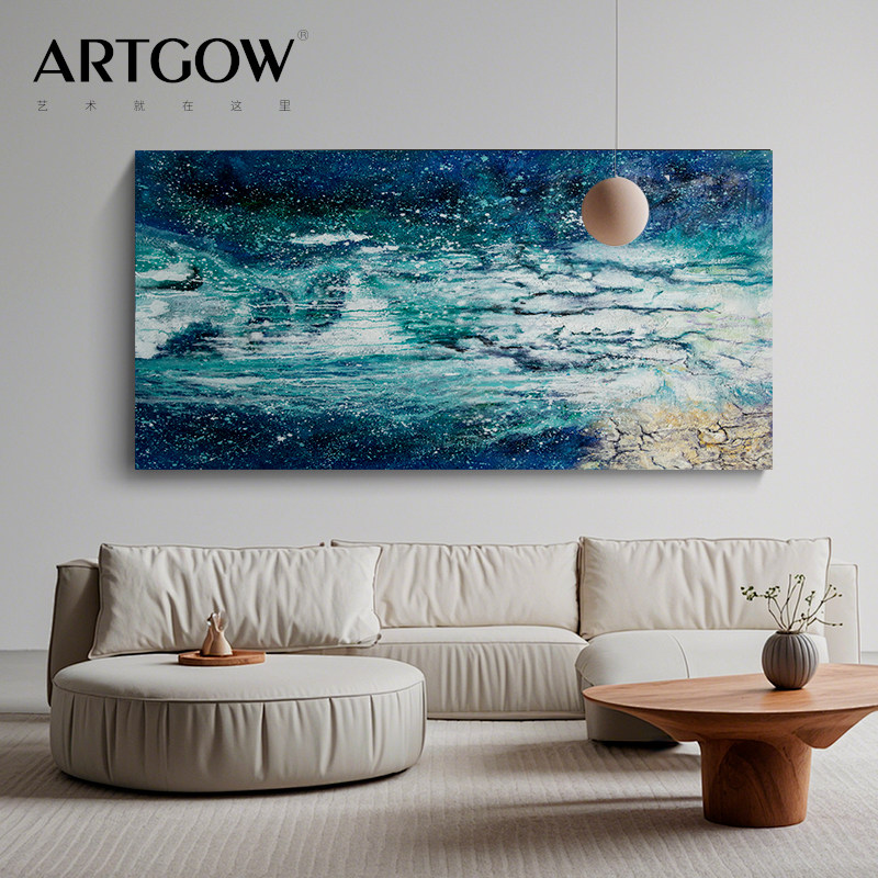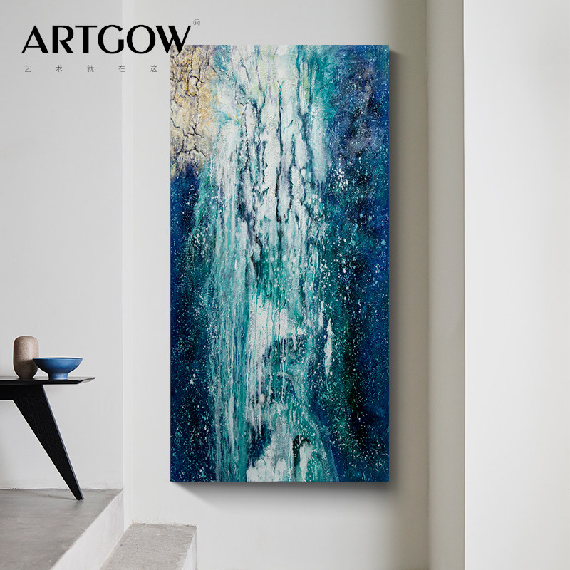 饰画高级感简约现代挂画蓝绿手绘肌理油画 客厅抽象装 森林流水