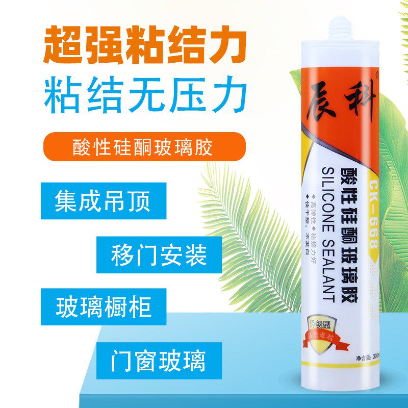 辰科668酸性玻璃胶集成吊顶玻璃橱柜门窗胶瓷白透明快干胶整箱