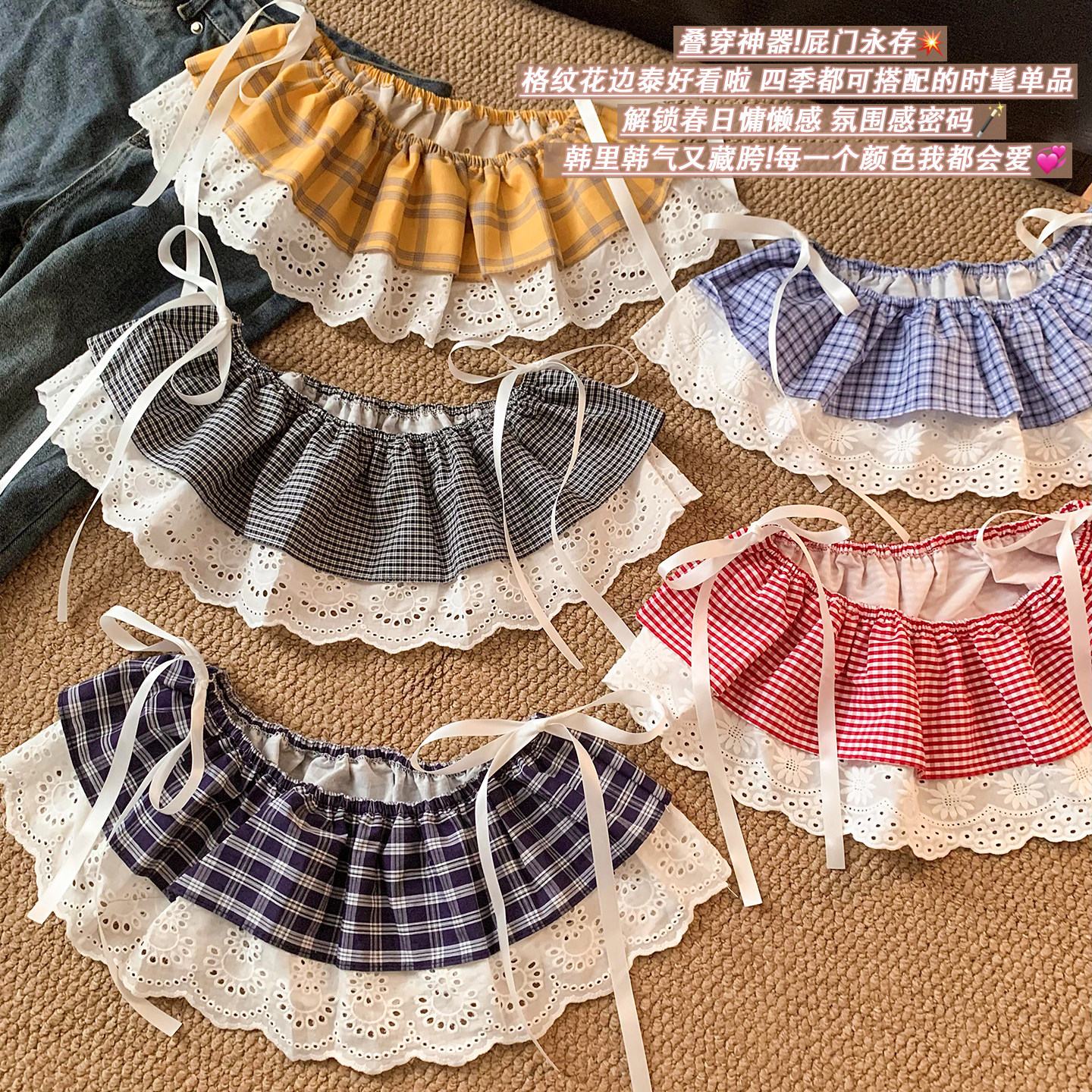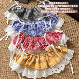 群帘配裤 百搭叠穿半身裙下摆短款 子 时尚 蕾丝边格子屁帘女2026新款