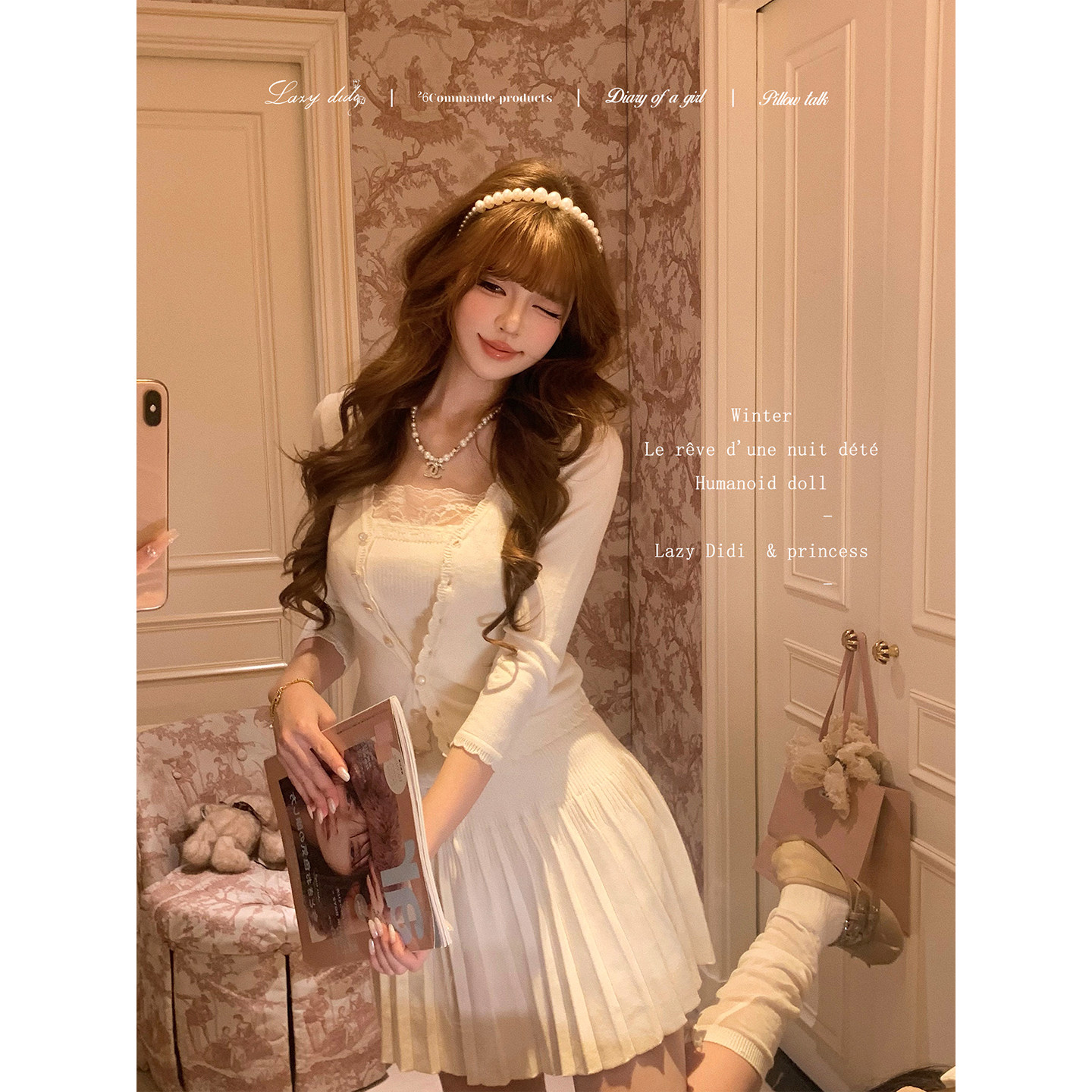 针织蕾丝上衣a字百褶裙套组 柔软织物吊带开衫 Lazy Didi温柔法则