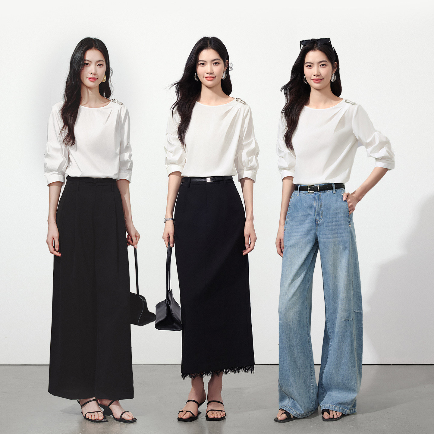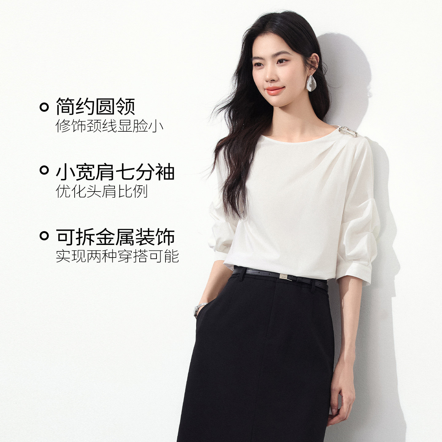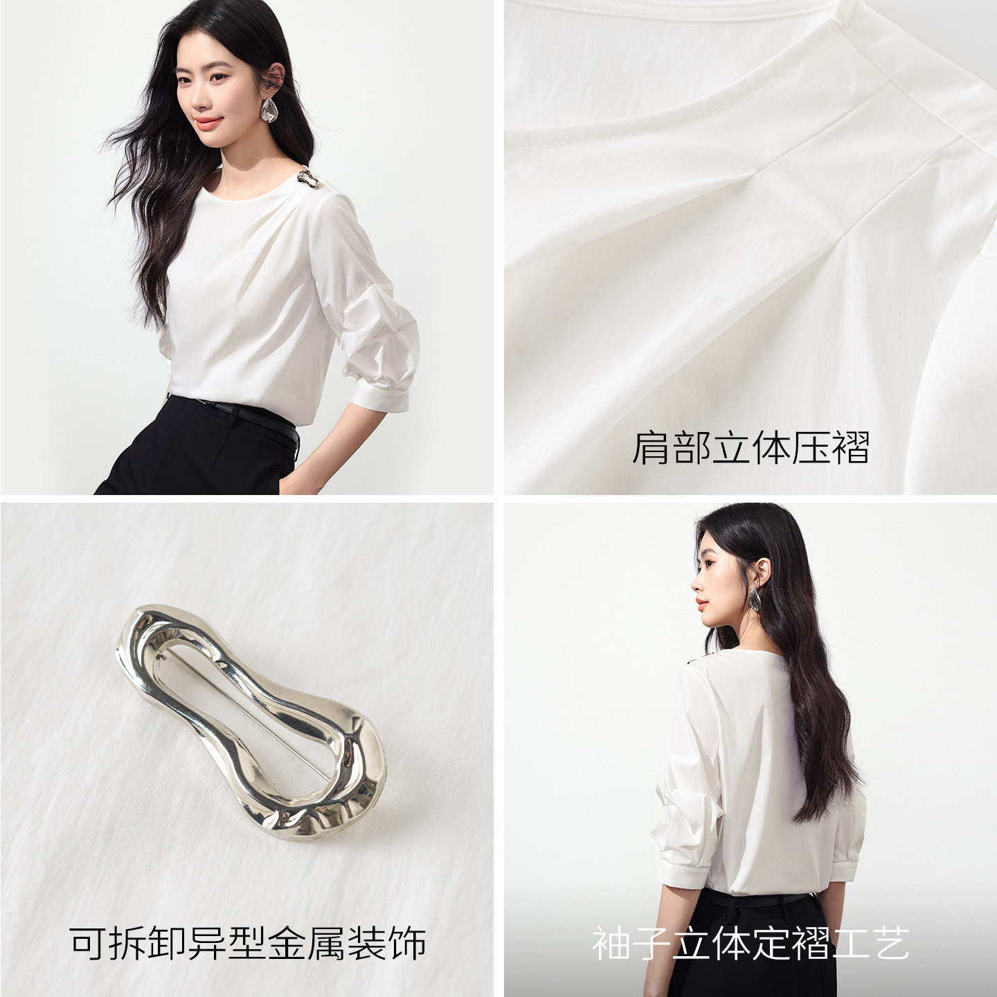 女2026年夏装 七分袖 新款 泡泡袖 上衣 法式 衣香丽影白色宽松解构衬衫