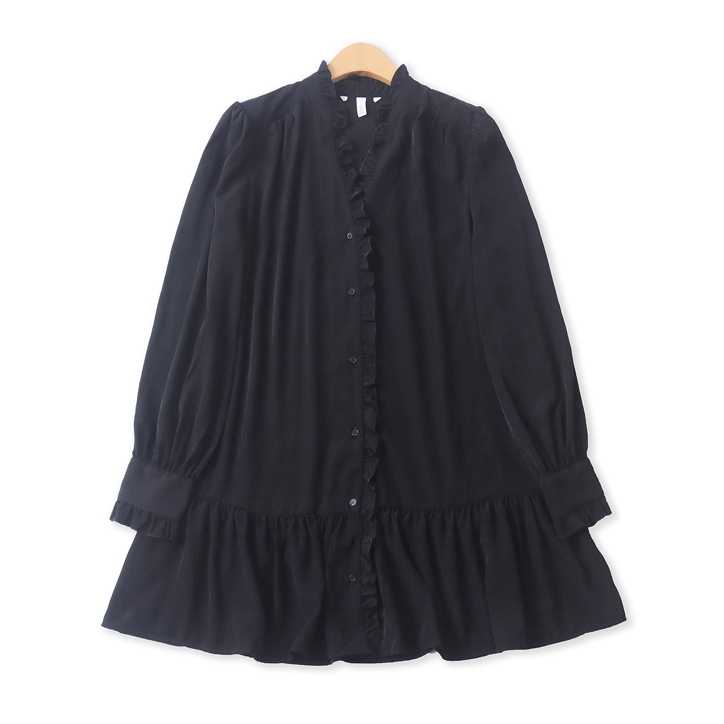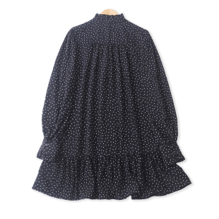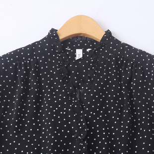 单排扣荷叶边宽松长袖 百搭时尚 连衣裙19654 外贸女装 波点裙春新款