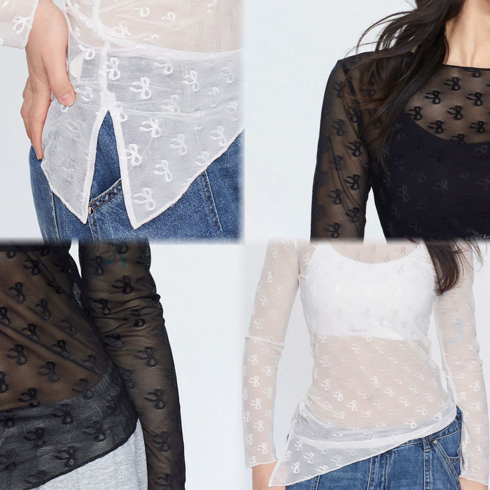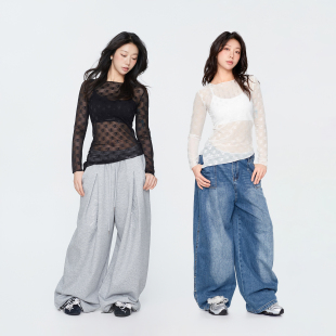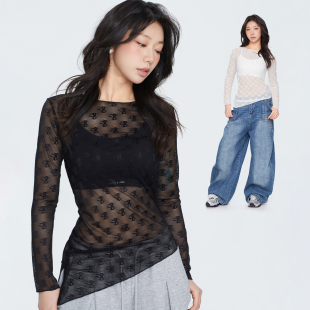 CBXLAB街舞潮牌 网纱蕾丝跳舞内搭下摆开叉显瘦辣妹上衣 古月同款