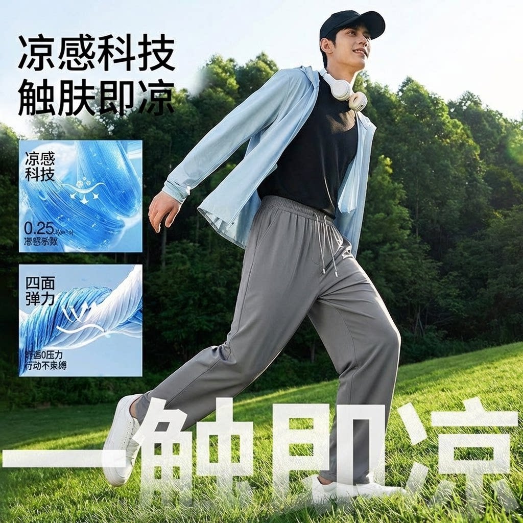男生垂感宽松阔腿裤 班尼路S&K冰丝裤 凉感速干直筒裤 新款 子男夏季