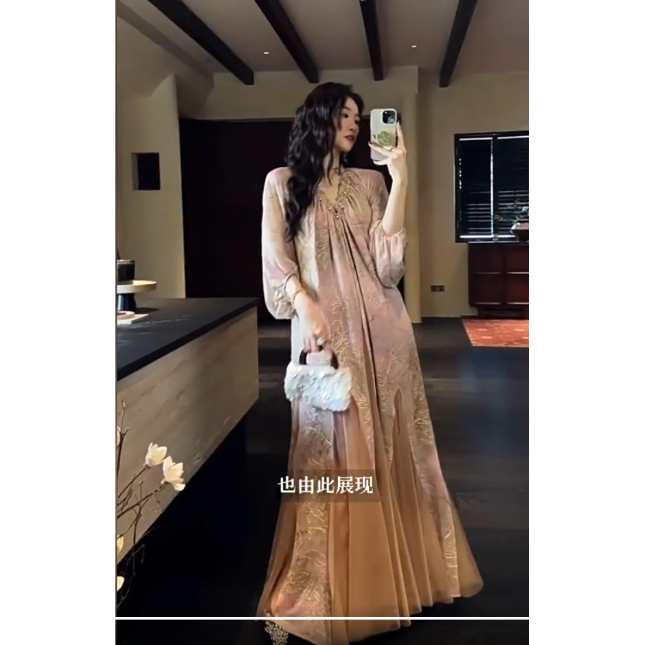 阑珊 三吉同款 24日」 烫金烧花冰花绒拼水墨纱裙组合 「9折