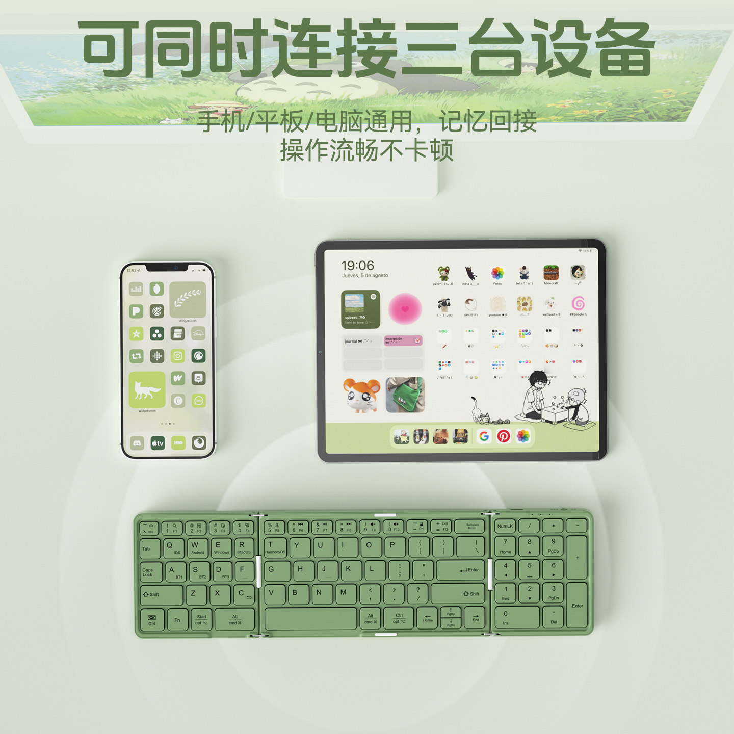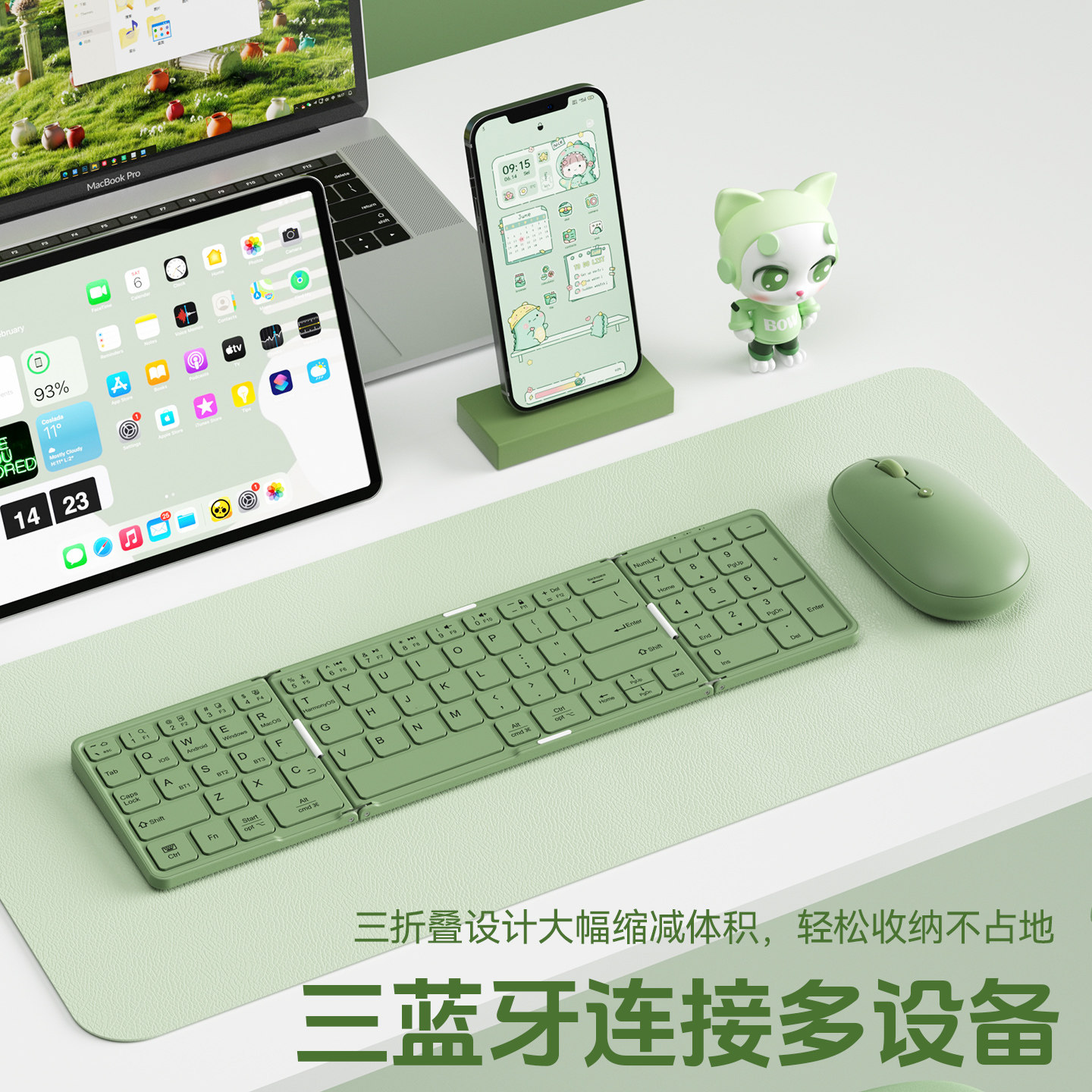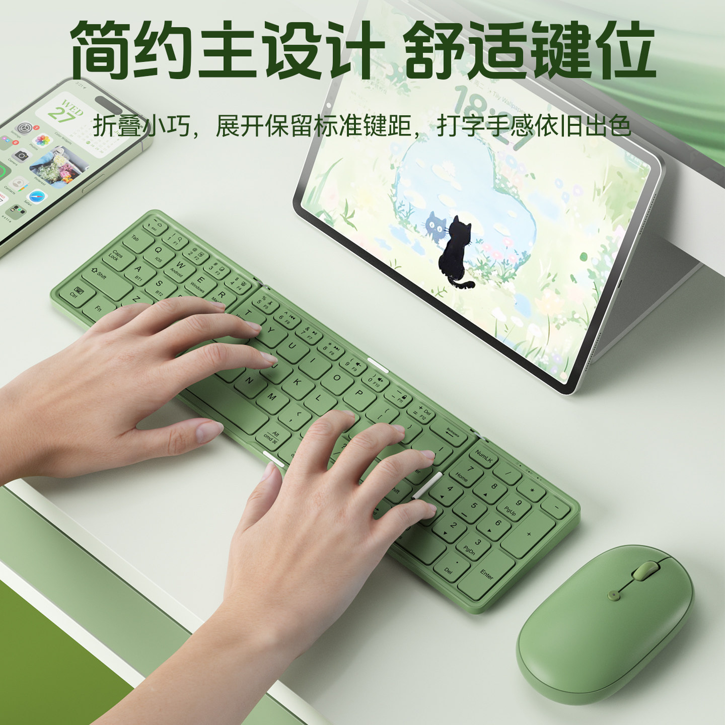 高颜值静音舒适轻薄便携手感好长续航适用于iPad华为小米平板电脑办公通用 三蓝牙可折叠键盘鼠标套装 BOW 新款