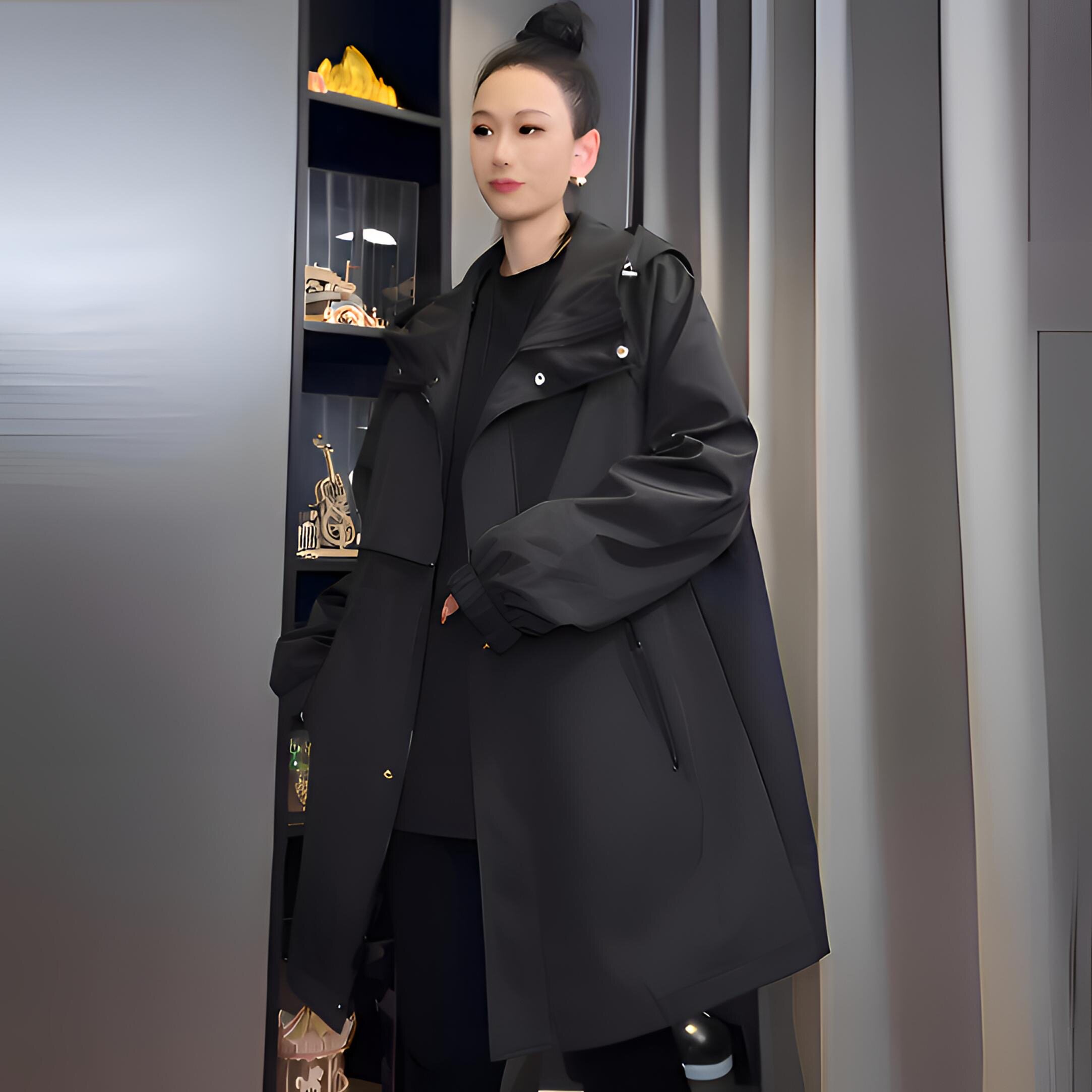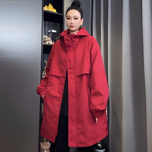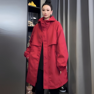 百搭连帽外套 时尚 风衣女2026春秋新款 休闲宽松收腰显瘦中长款