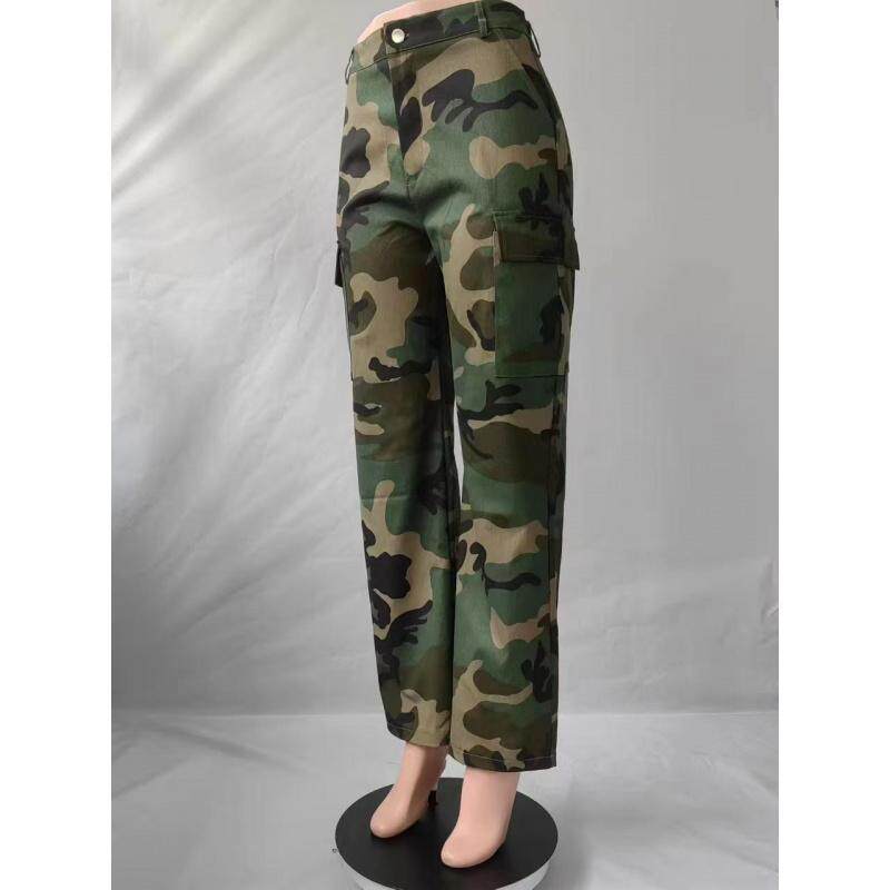 Cargo Pants Army Fatigue Camouflage Camo Leg Women Wide