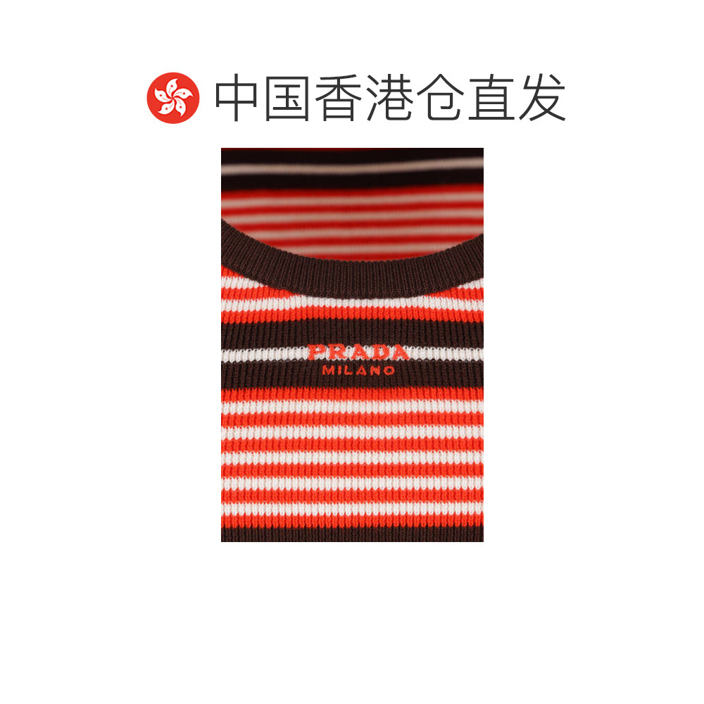 背心上衣 香港直邮Prada 条纹针织短款 女士 P29C06SOOO19I 普拉达