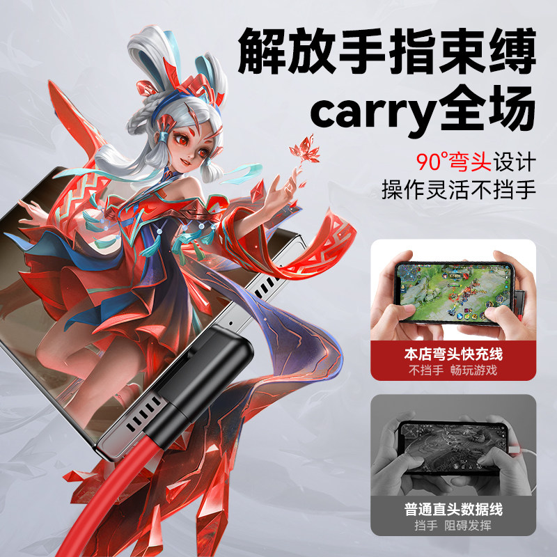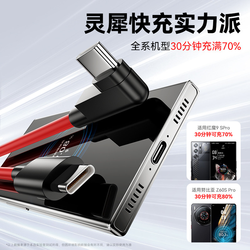 驯龙师 双头typec数据线闪充适用红魔S10S9S8S7努比亚Z40sPro手机Z50Z30Z60Z70充电线120游戏弯头6R快充线80w