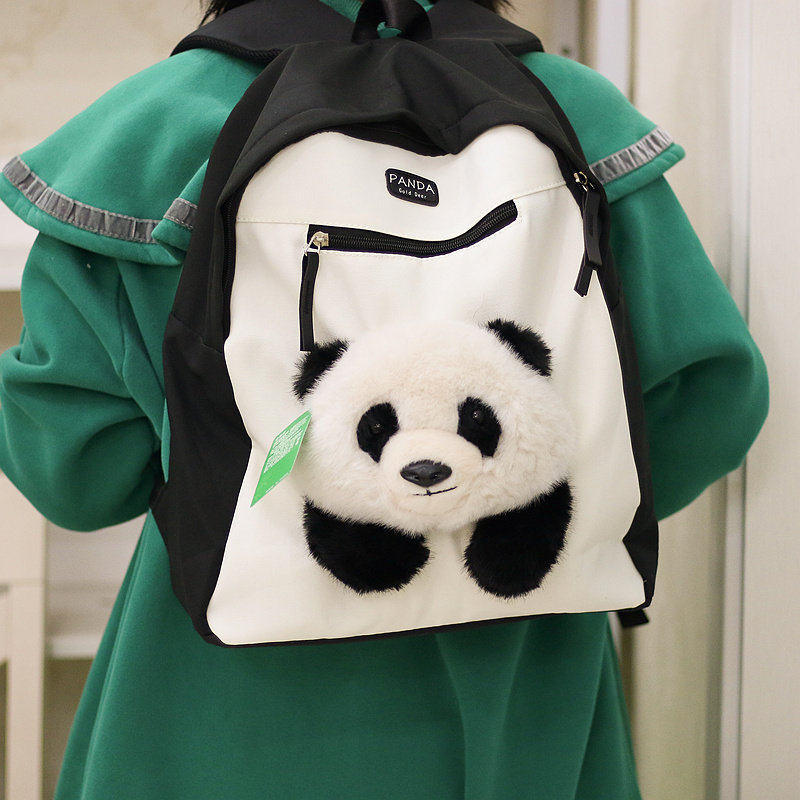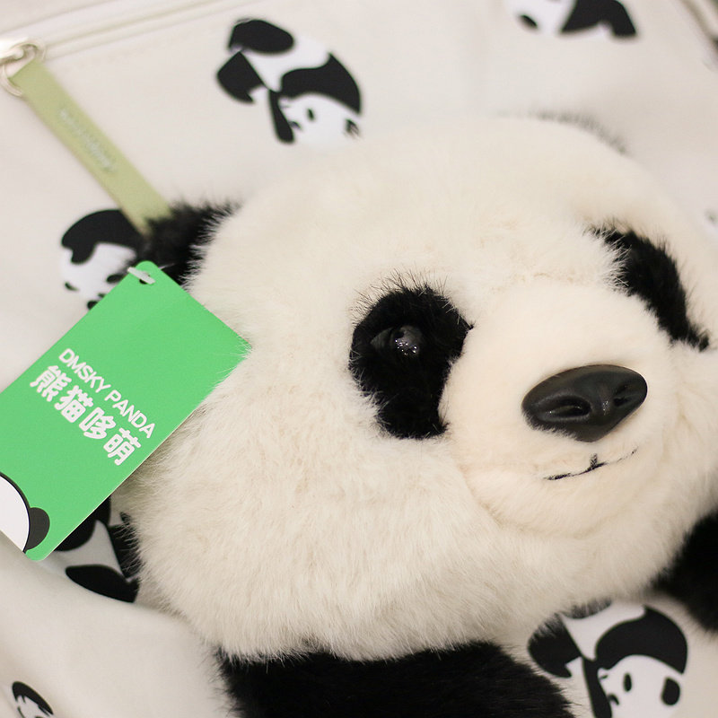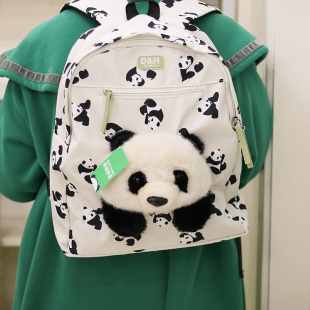 正版 萌物 可爱熊猫帆布包双肩包毛绒玩具生日礼物书包成都基地同款
