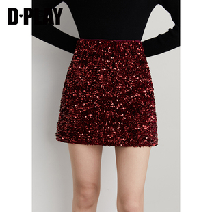 百搭灰色亮片半身裙女短裙时尚 DPLAY 新款 2025年冬季 半裙 惠品