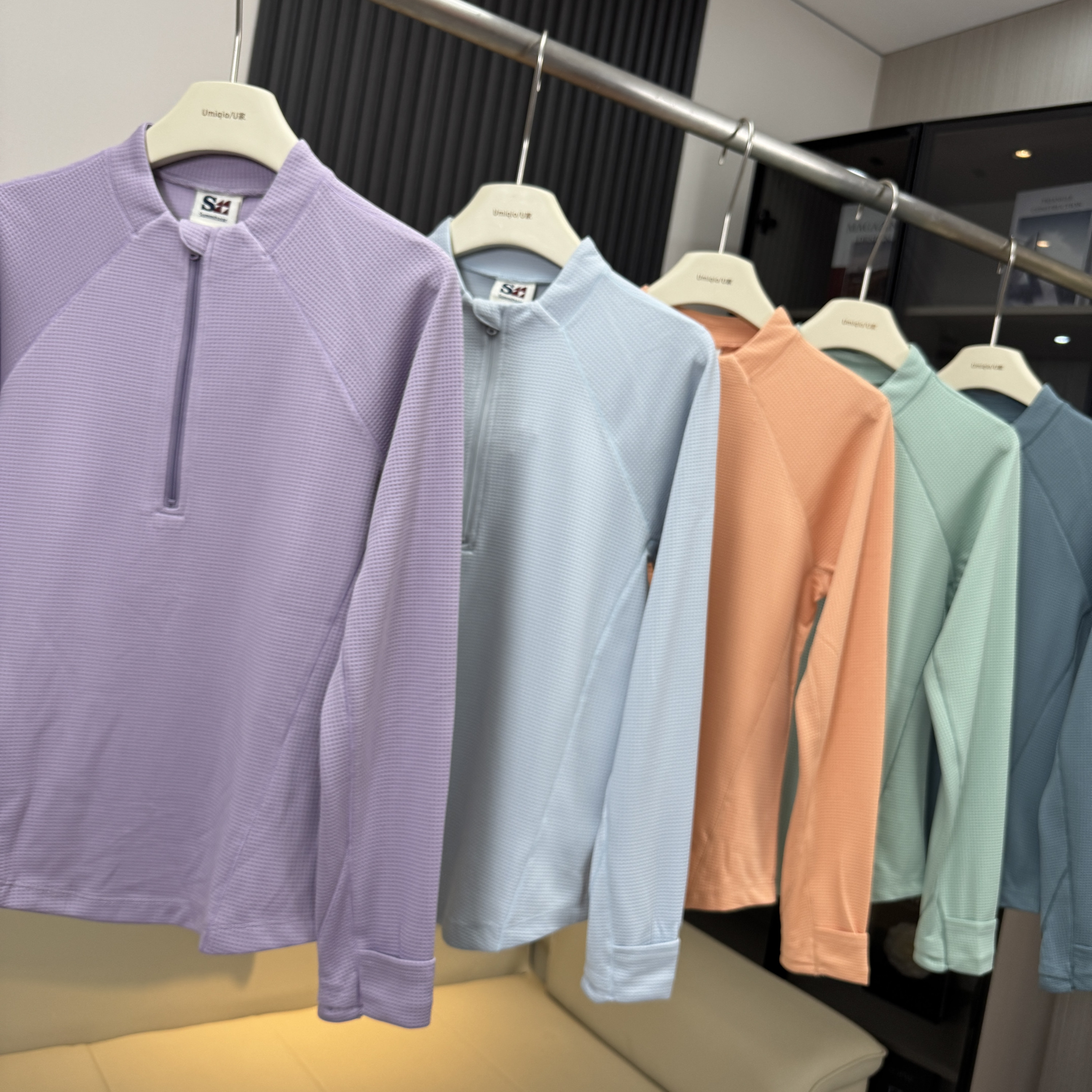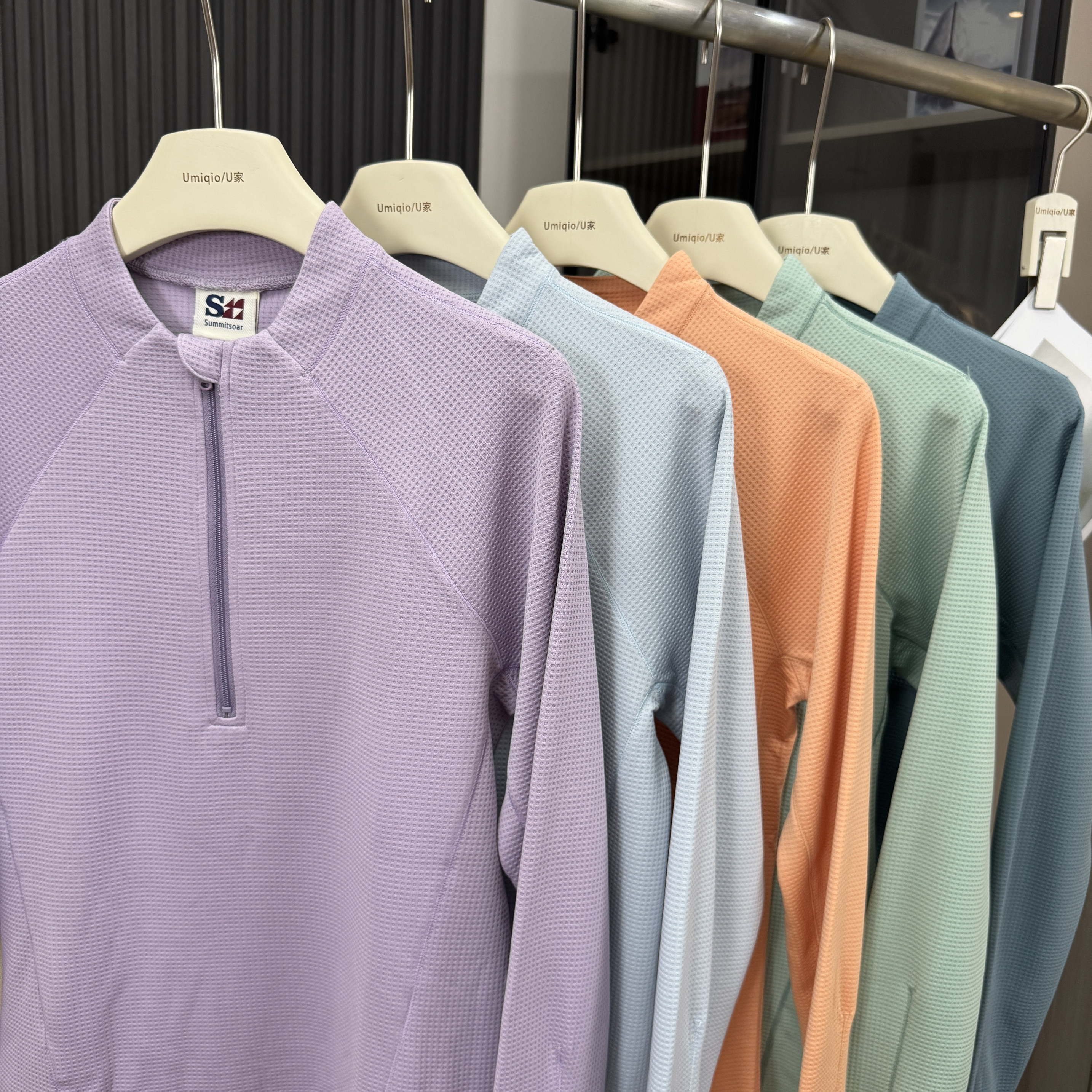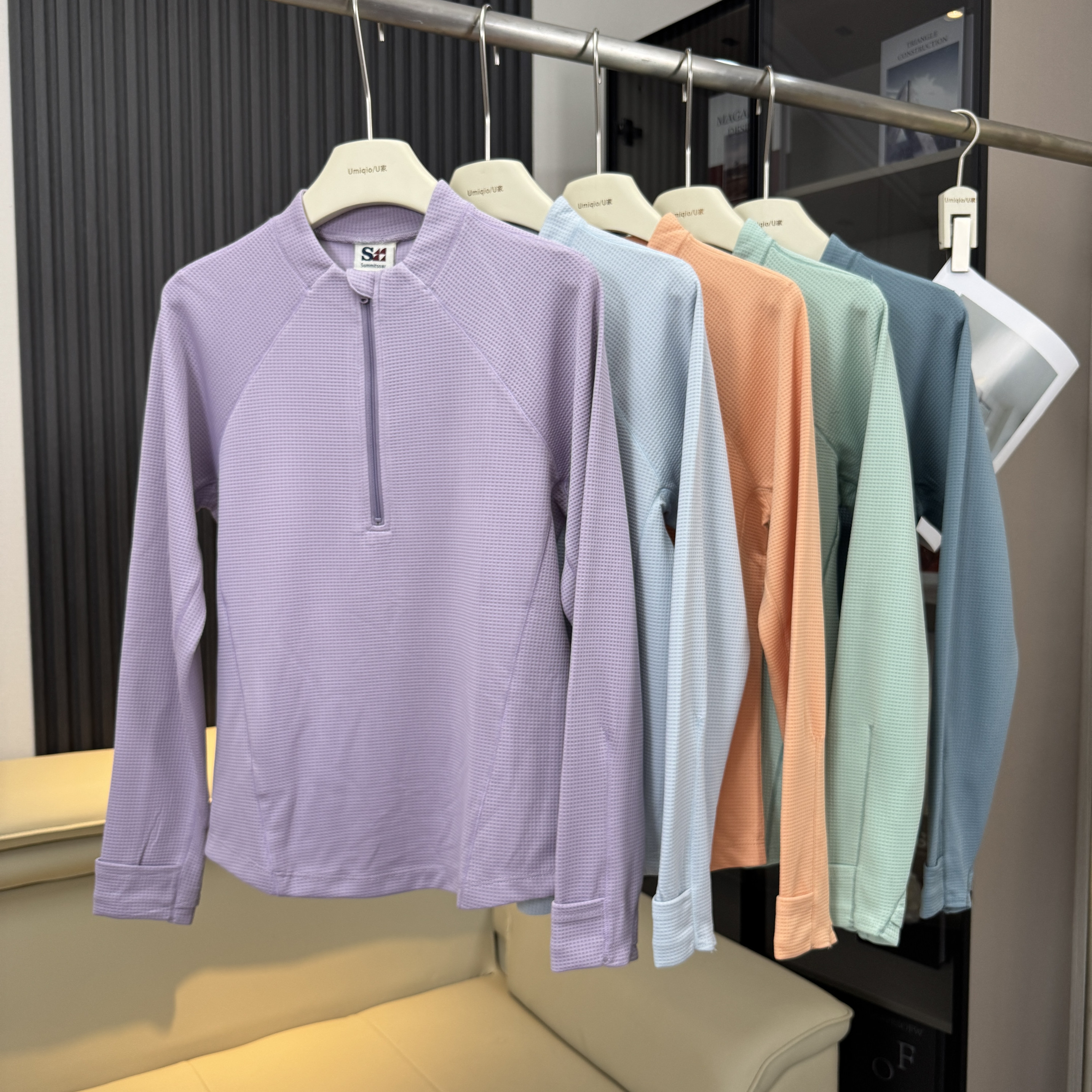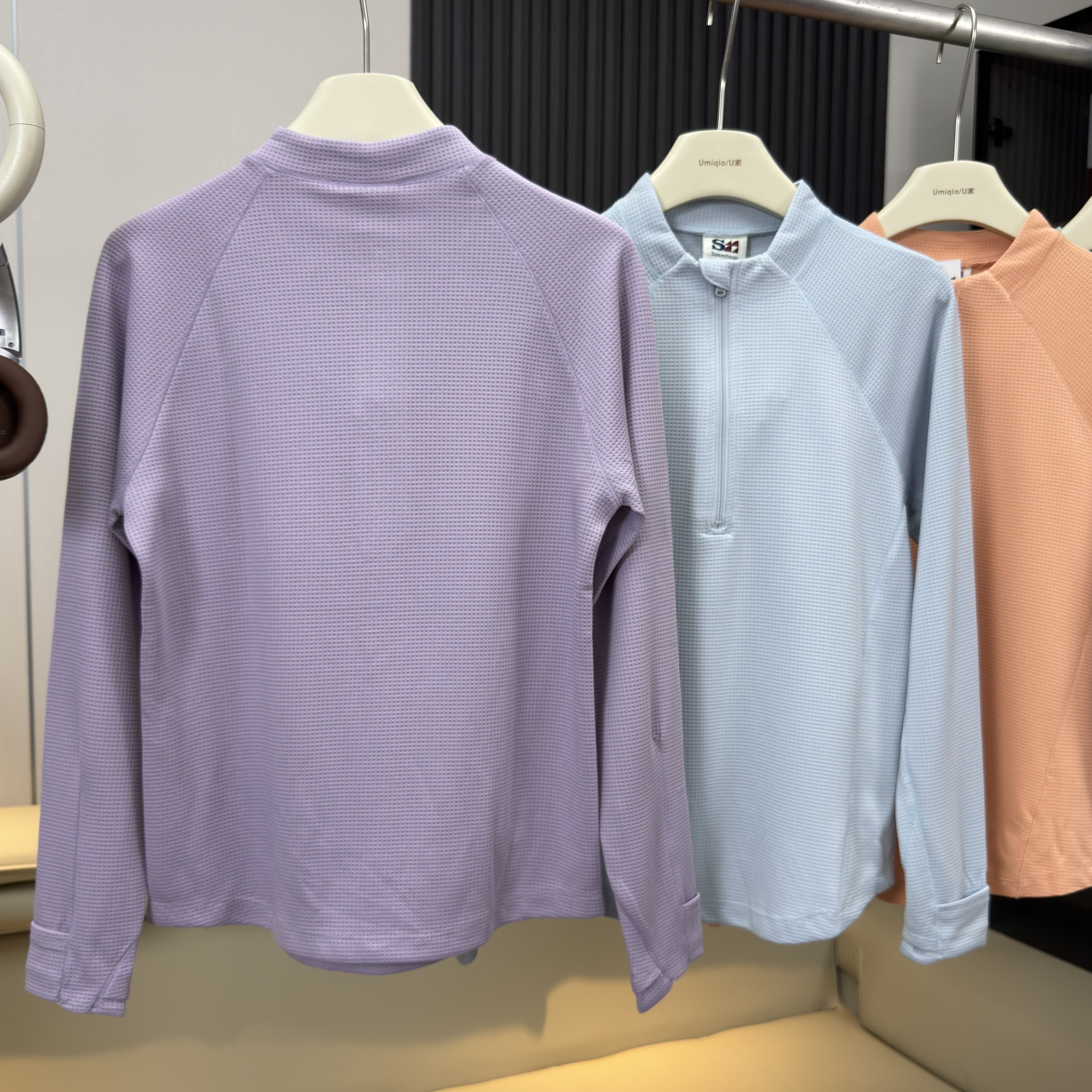 棵米ai蕉家 T恤卫衣女 户外山系5A抗菌吸湿排汗华夫格半开领长袖