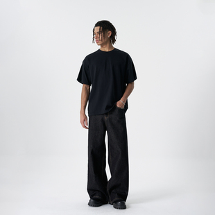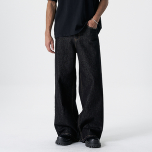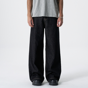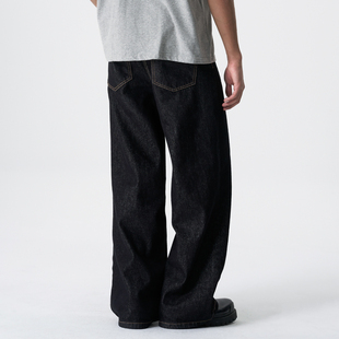 新因素美式 男 cleanfit黑窄幅赤耳原牛覆古阔腿直筒A字宽松牛仔裤