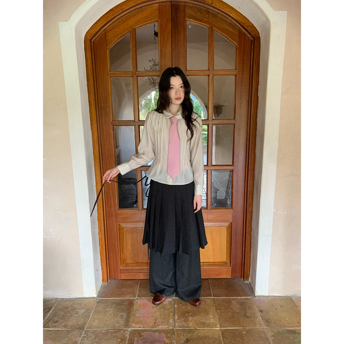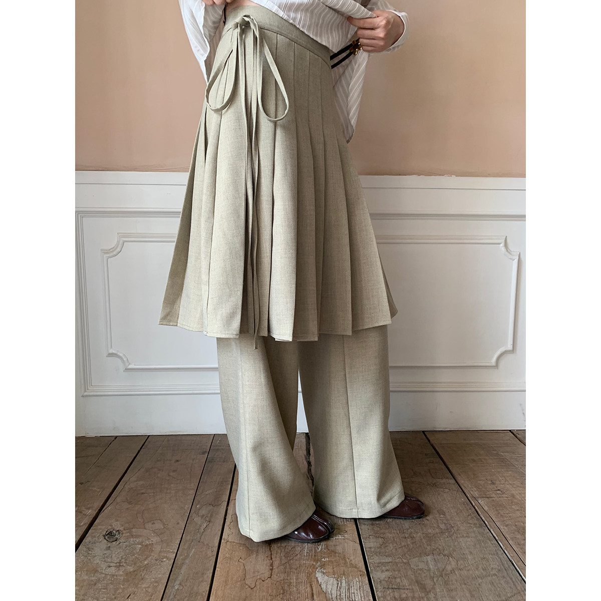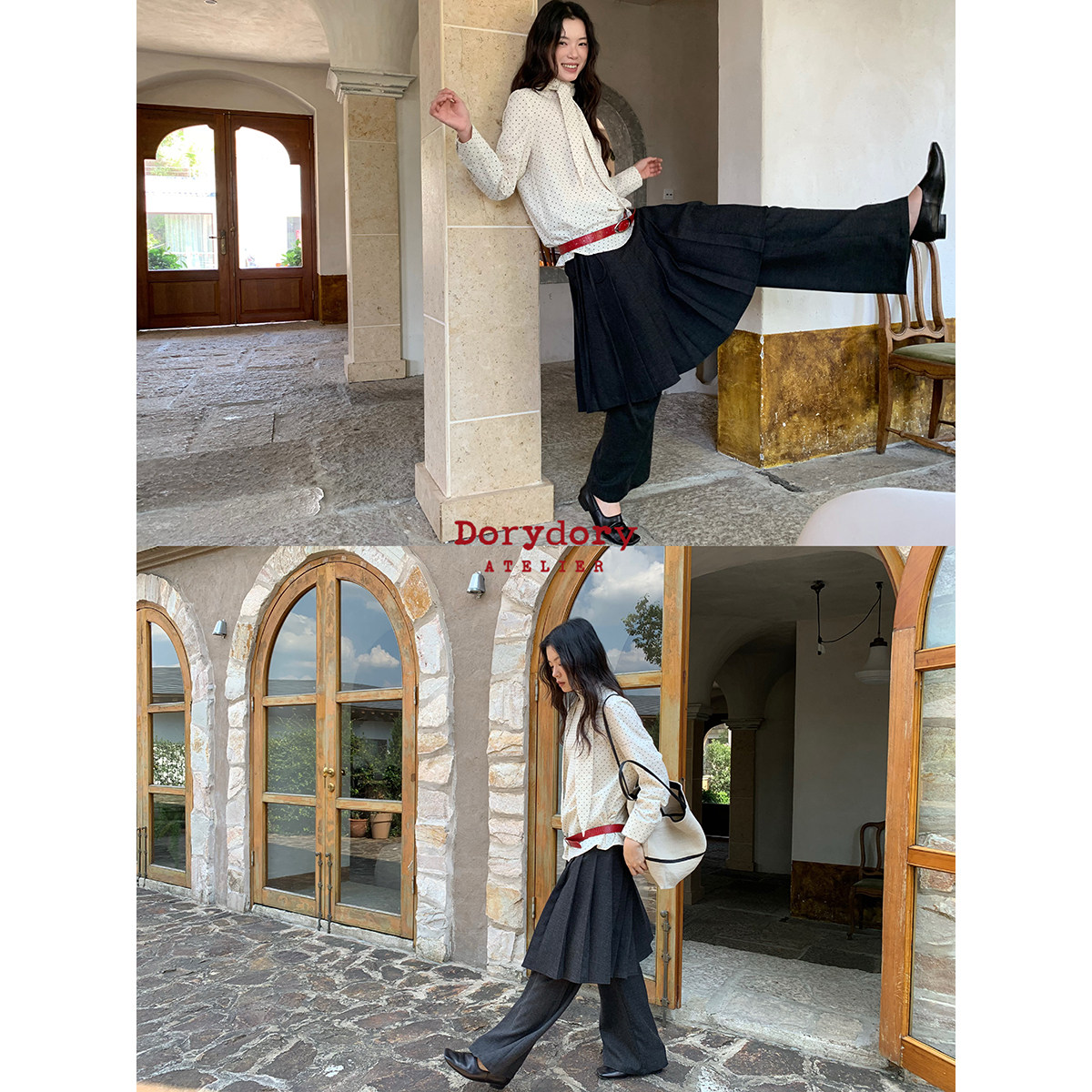 时髦垂感休闲裤 dorydory别致设计感百褶裙裤 宽松直筒裤 长裤 休闲裤