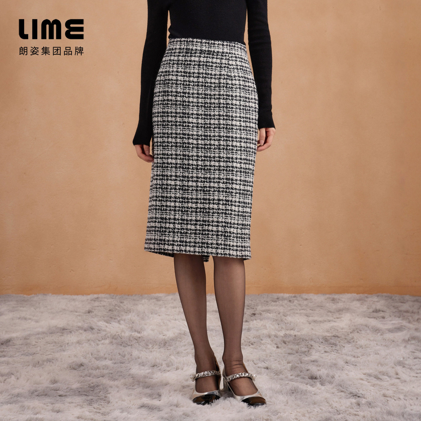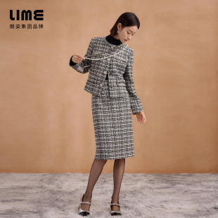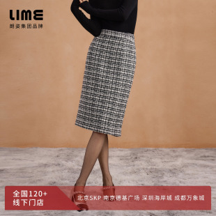 LIME莱茵混纺格纹半裙高腰直身剪裁小香风气质25冬新 吉娜同款