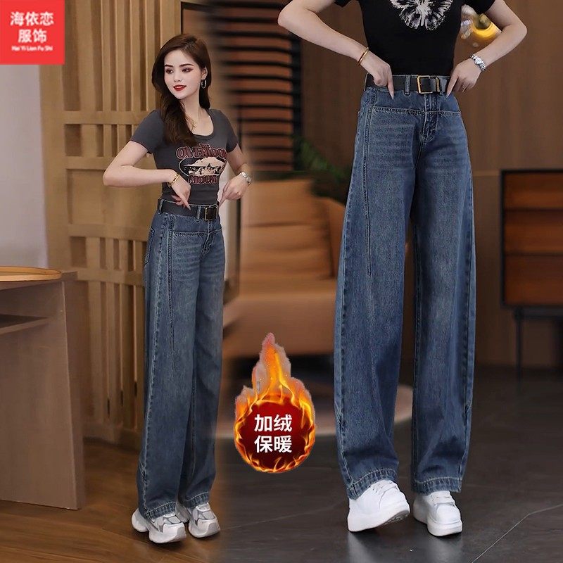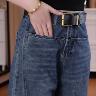 女春秋冬季 阔腿宽松裤 2026新款 香蕉裤 子 高腰弯刀裤 怀旧复古牛仔裤