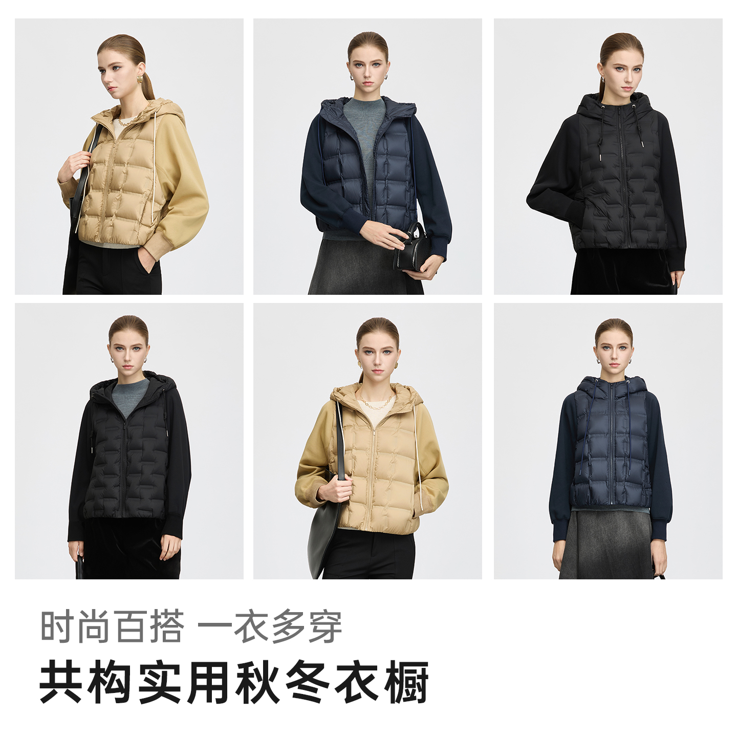 sdeer圣迪奥女装 高领连帽拼接轻薄羽绒服S25463101 25年新品
