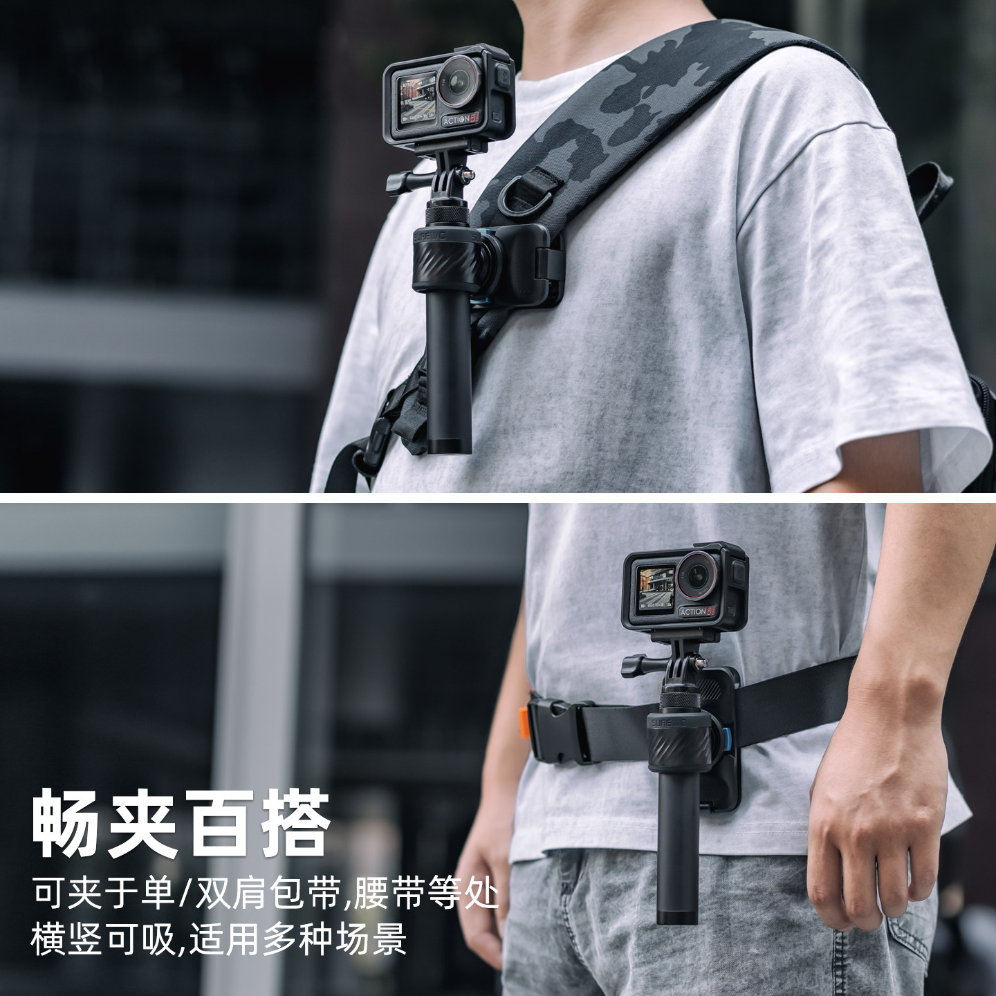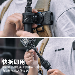 适用dji大疆Action5自拍杆背包快挂夹gopro13运动相机延长杆磁吸快拆挂架影石Acepro2配件收纳架徒步拍摄神器