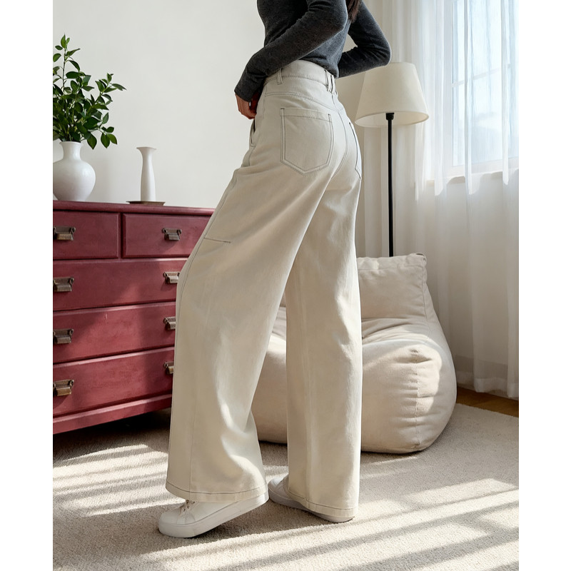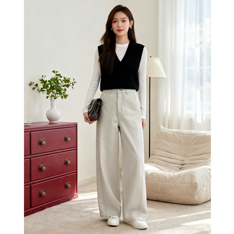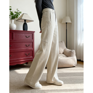 拼接剪裁高腰显瘦阔腿裤 Basic 25秋款 百家好纯棉简约休闲裤 House