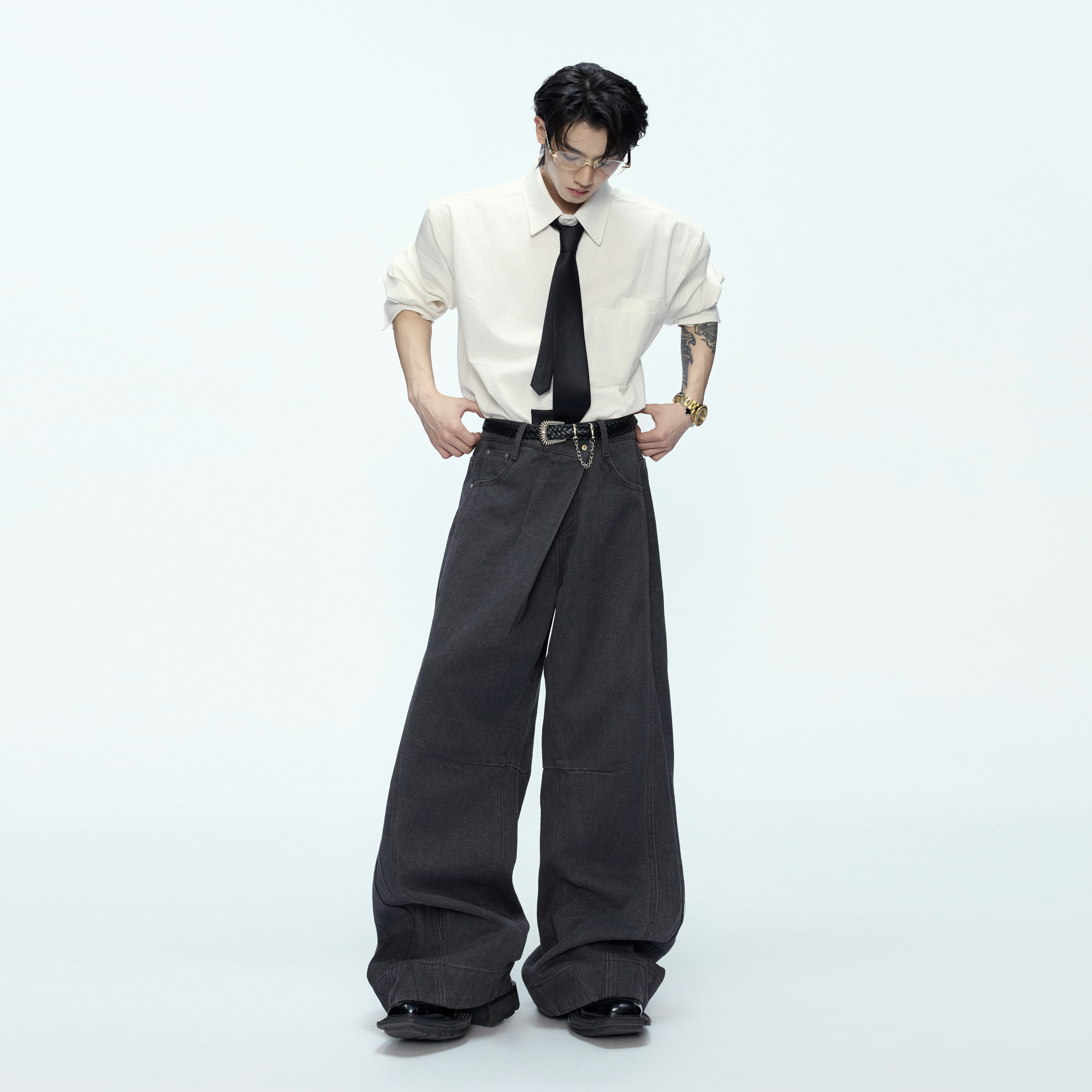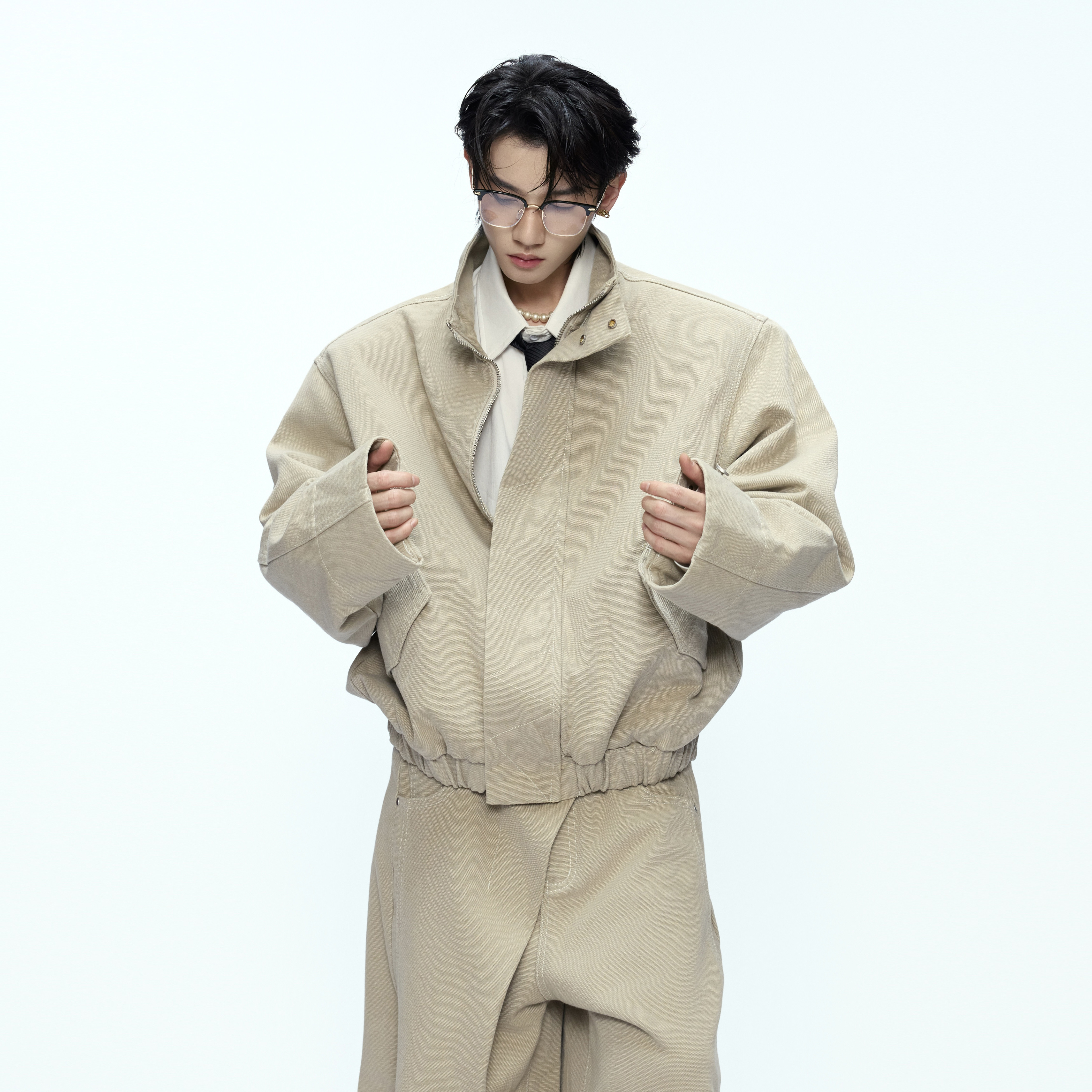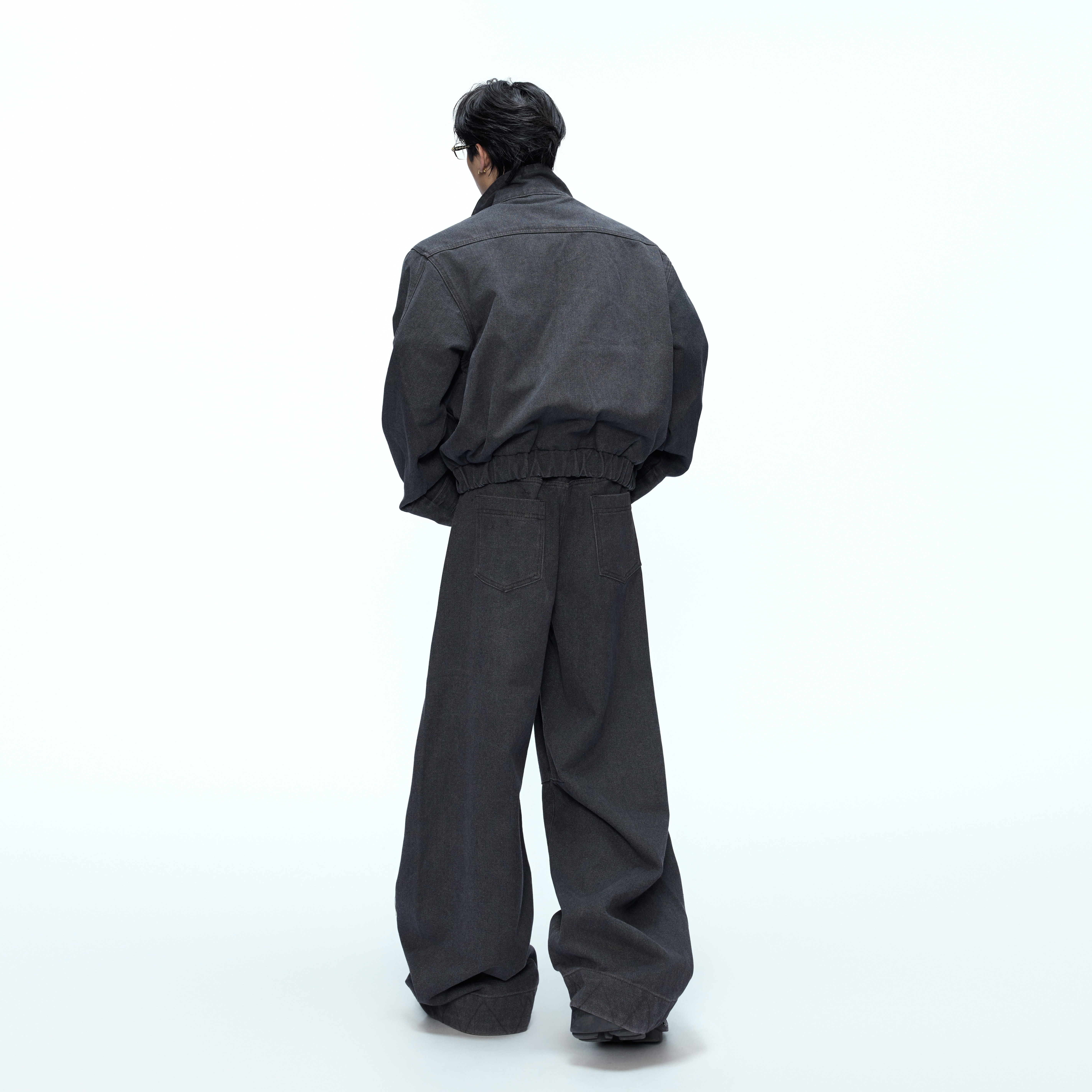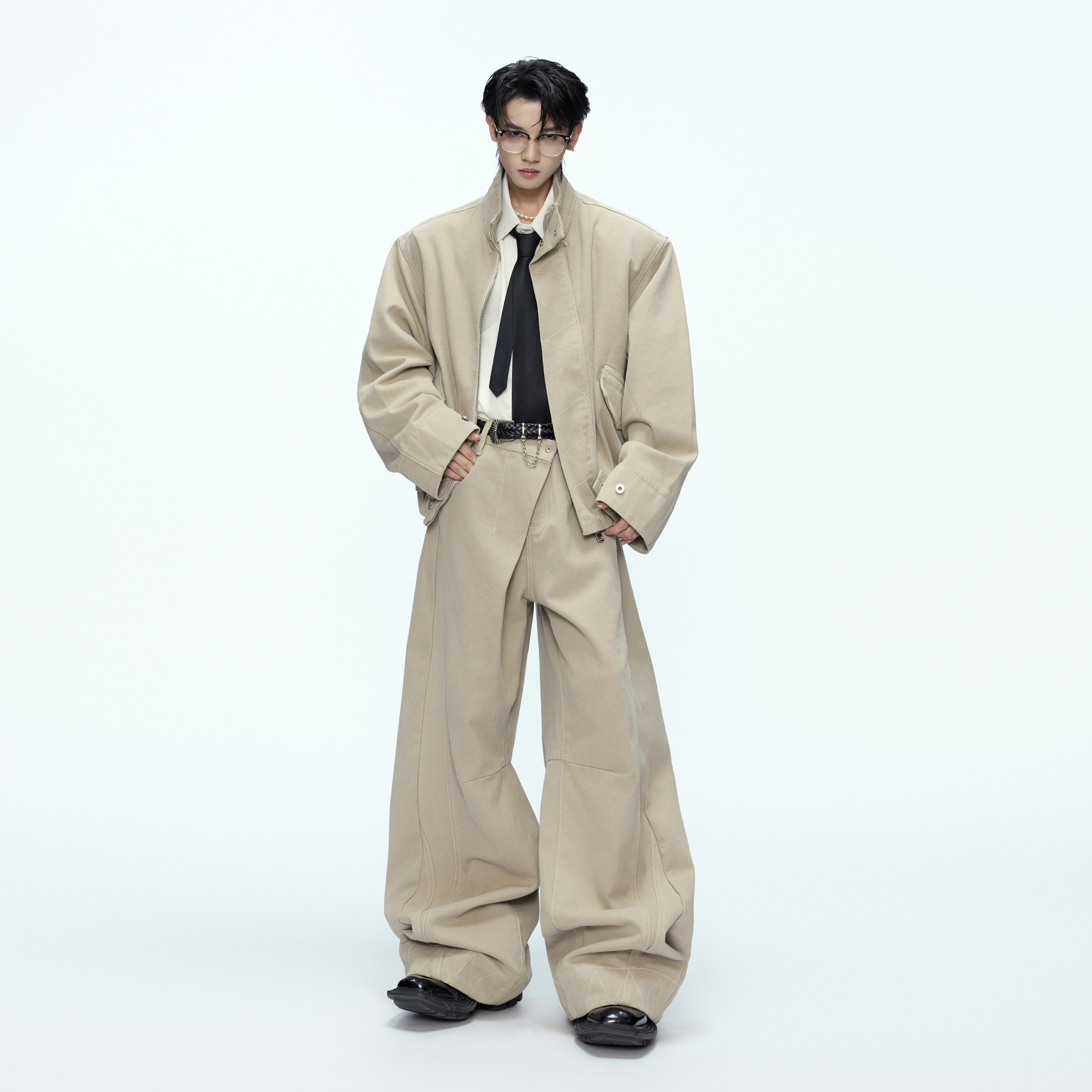裤 CulturE小众复古做旧牛仔套装 夹克外套废土重磅拉链大口袋工装